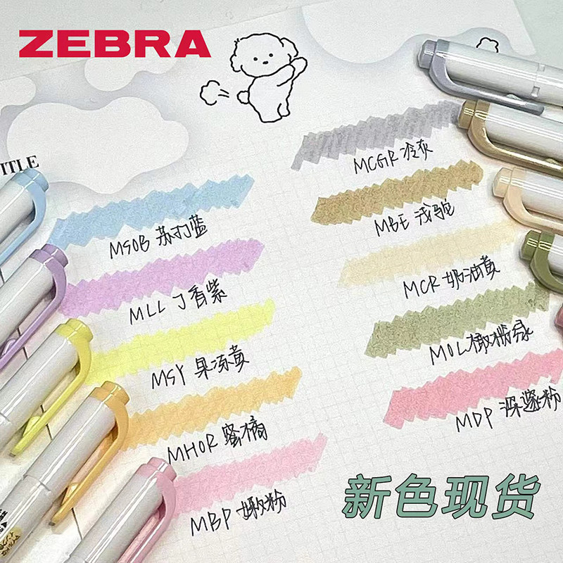 新色现货 日本ZEBRA斑马荧光笔双头粗细淡色标记笔彩色记号笔WKT7