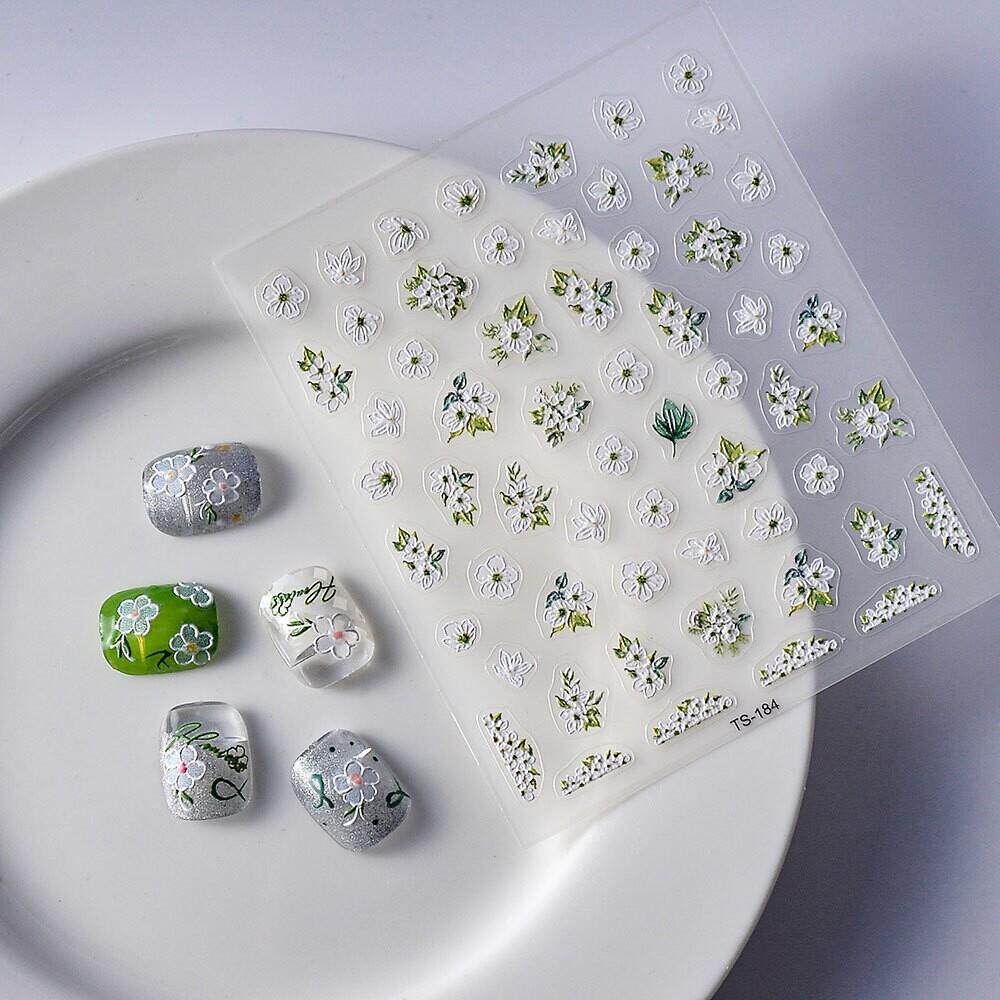 White Flower 5D Nail Art Stickers 白色花朵浮雕美甲贴纸手帐贴