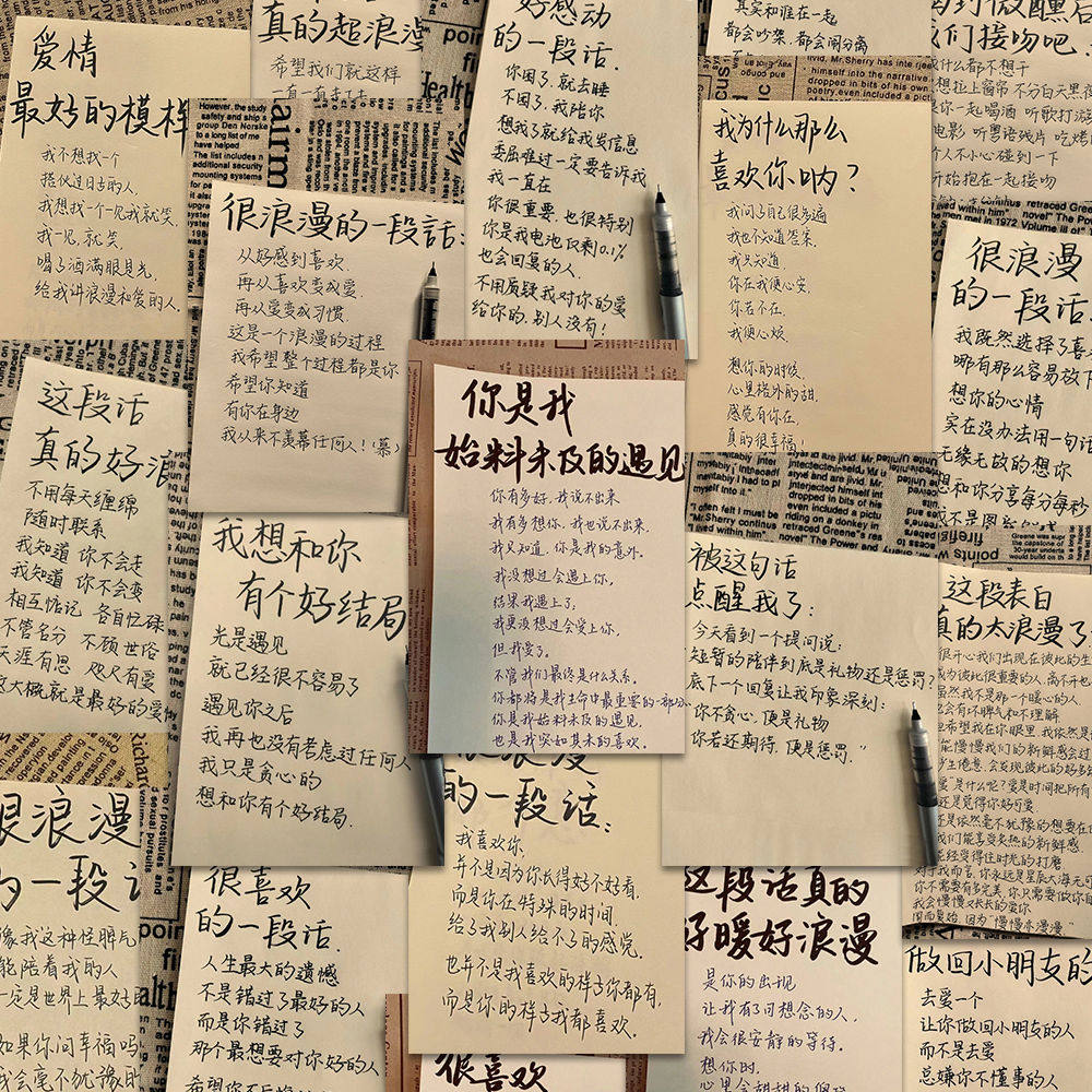 96张爆款复古手写浪漫情书贴纸浪漫情话diy手机壳行李箱桌面防水