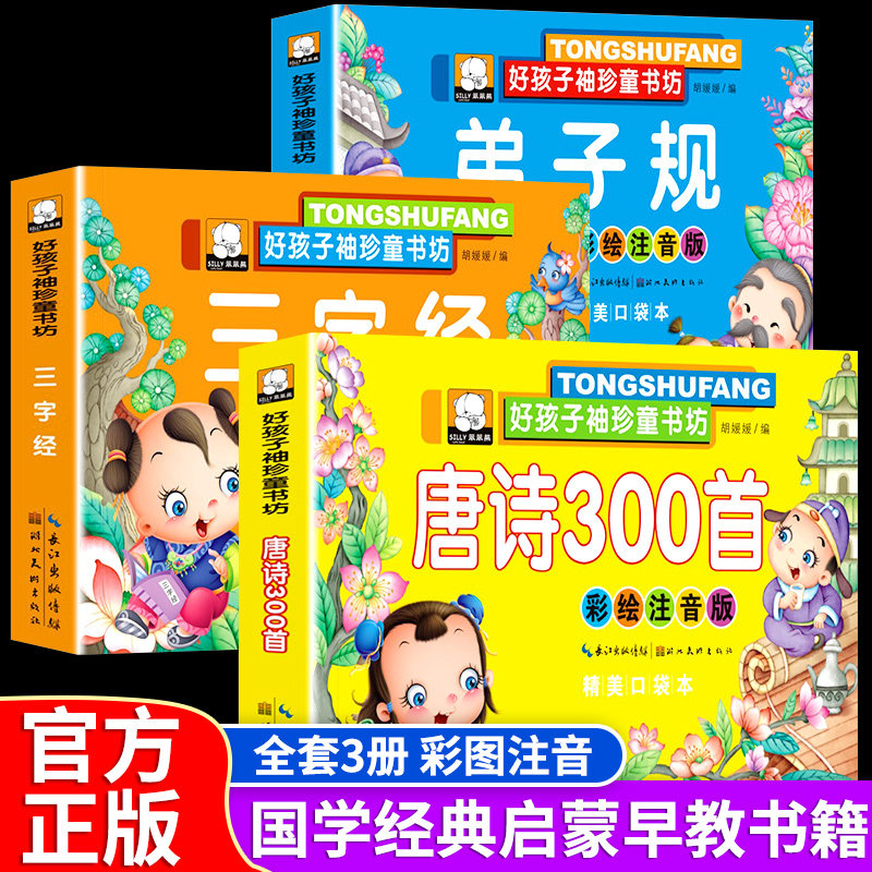 3本全套国学经典启蒙早教书宝宝三字经 弟子规 唐诗三百首故事书3-6岁彩图注音版幼儿图书读物童书4-5-7-8周岁幼儿园儿童书籍