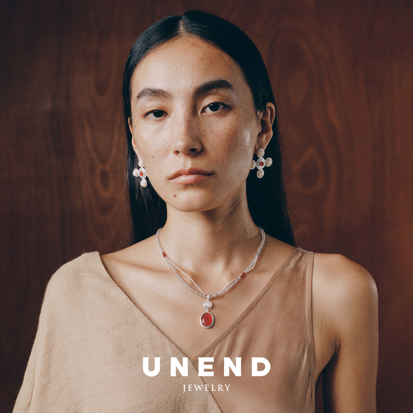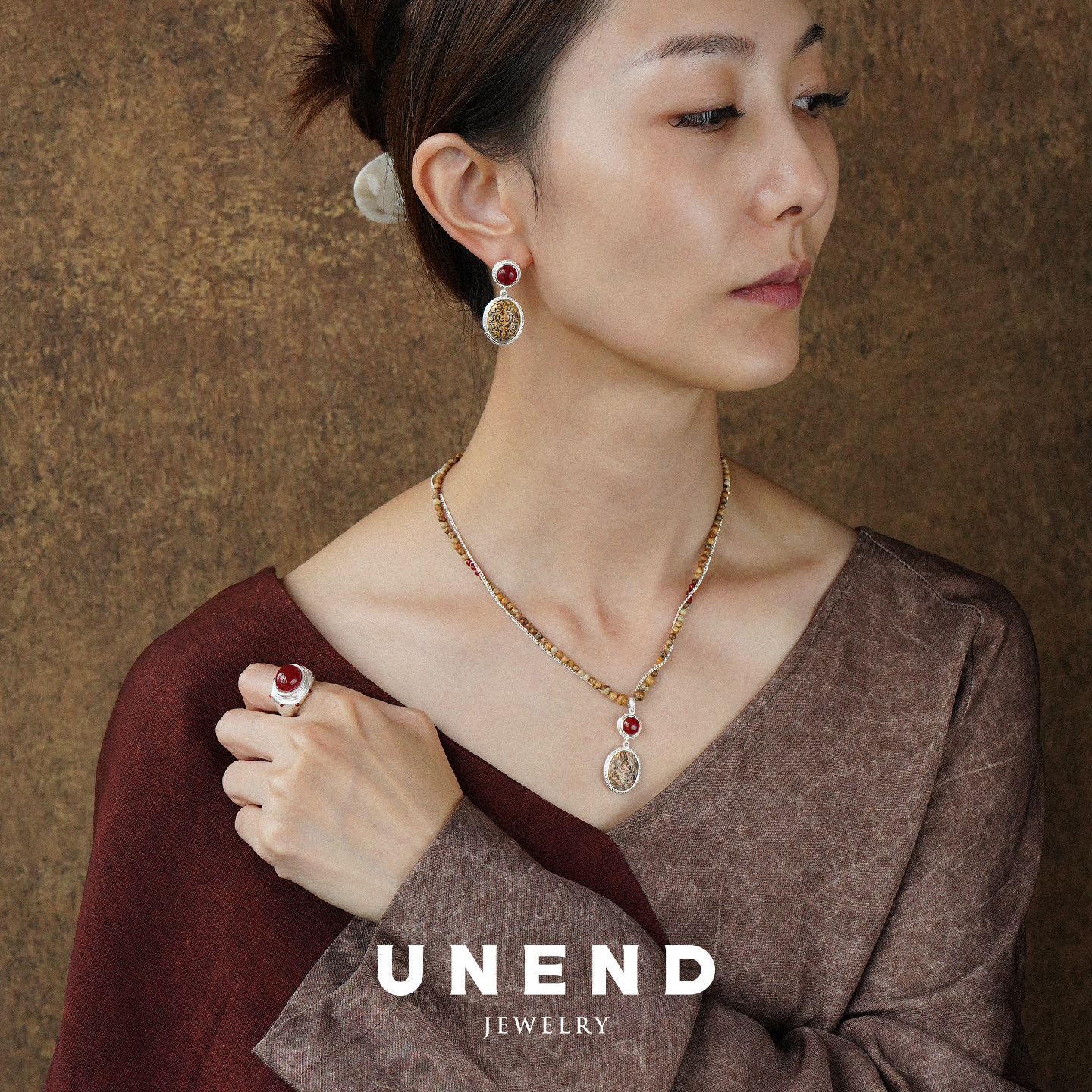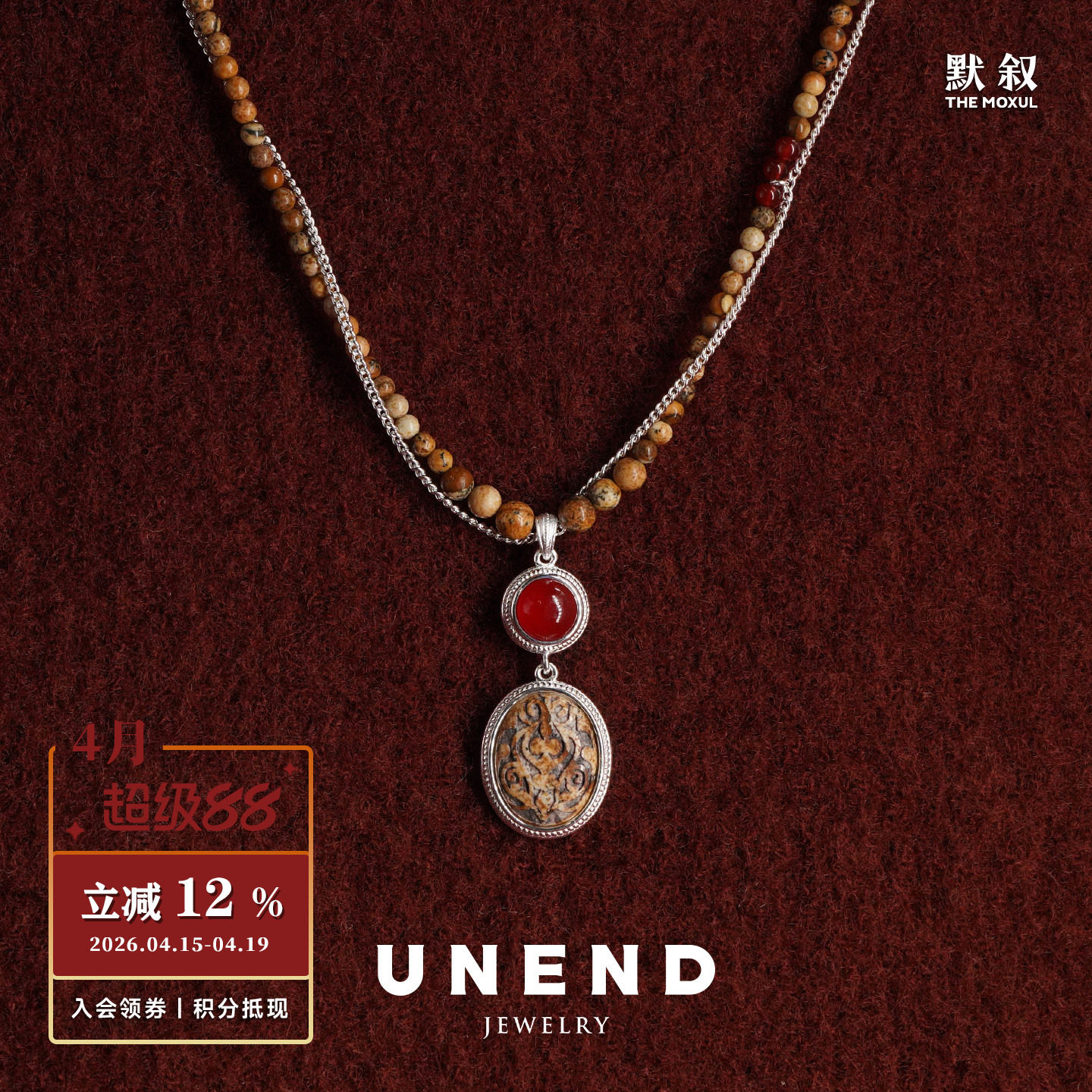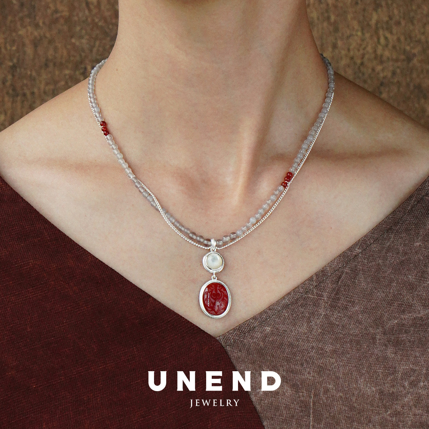 UNEND止续 纯银黎雾Mist项链 原创设计师银饰红玛瑙图画石 默叙