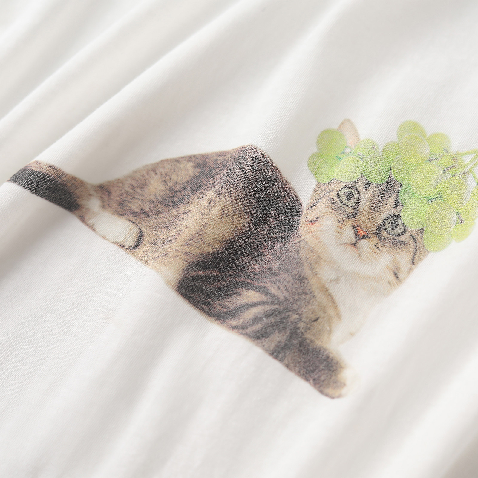 wana try棉麻葡萄猫印花防晒长袖T恤2026夏季新款休闲百搭上衣女