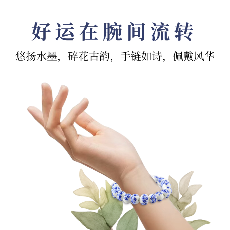 水墨青花瓷手链女民族风古典复古优雅陶瓷饰品情人节礼物