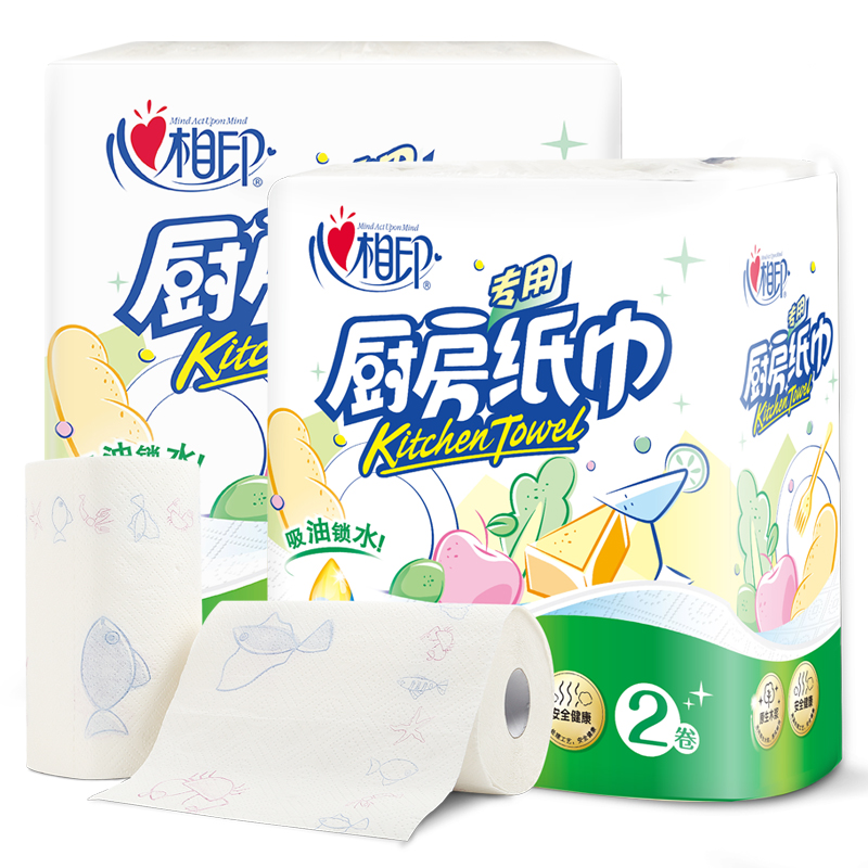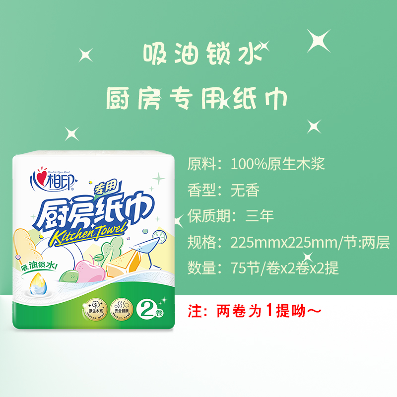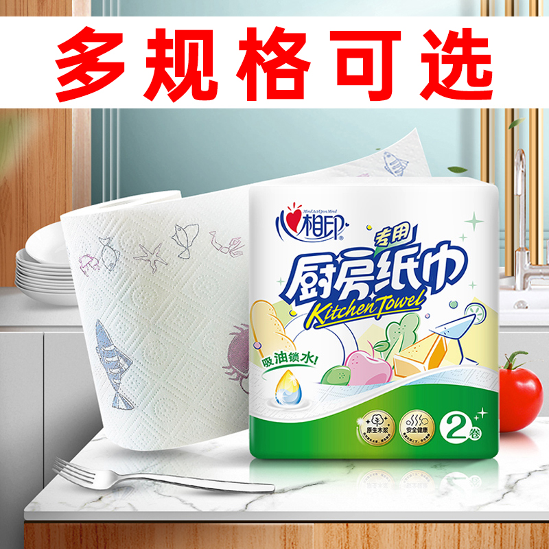 心相印厨房纸4提8大卷专用厨房纸巾吸油吸水纸加厚纸巾卷纸包邮