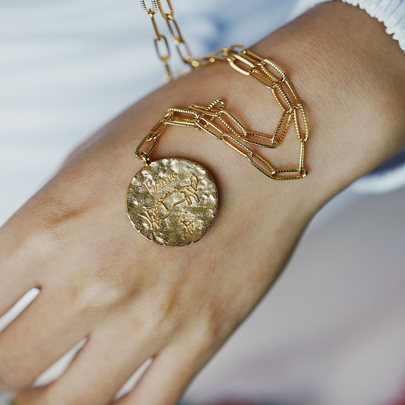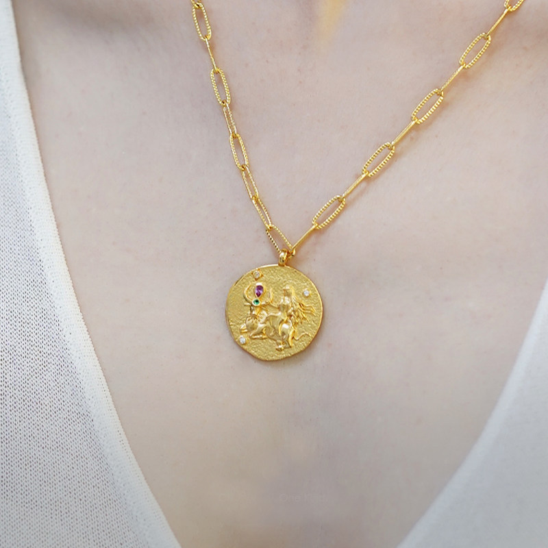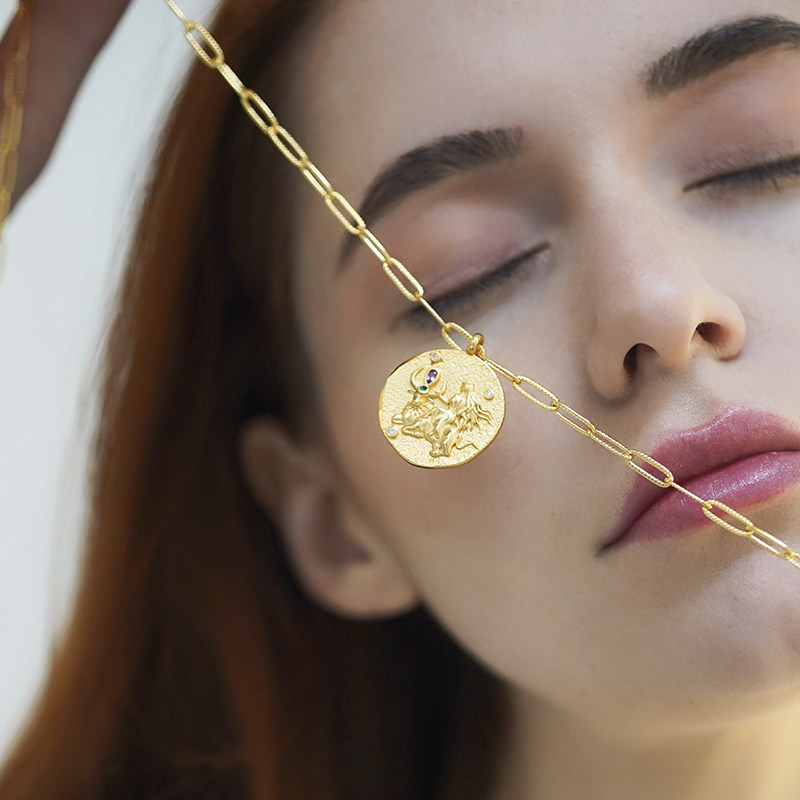 12星座节气定制系列18K镀金金牛座双面钱币项链 生日礼物欧美复古