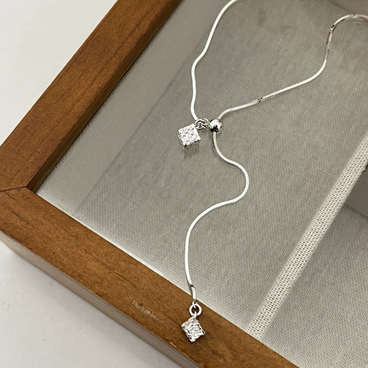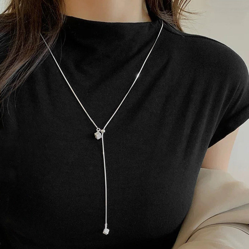925银方块抽拉式蛇骨链项链女高级感轻奢小众2026新款毛衣链65cm