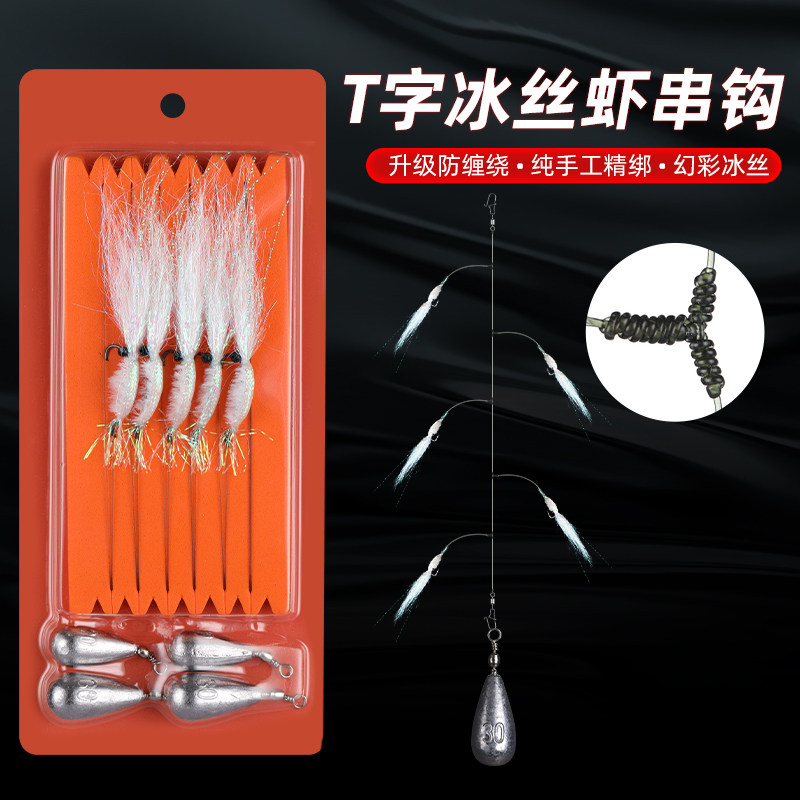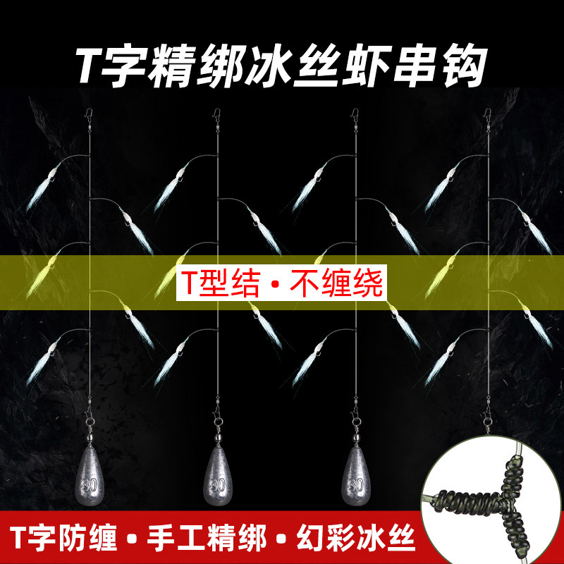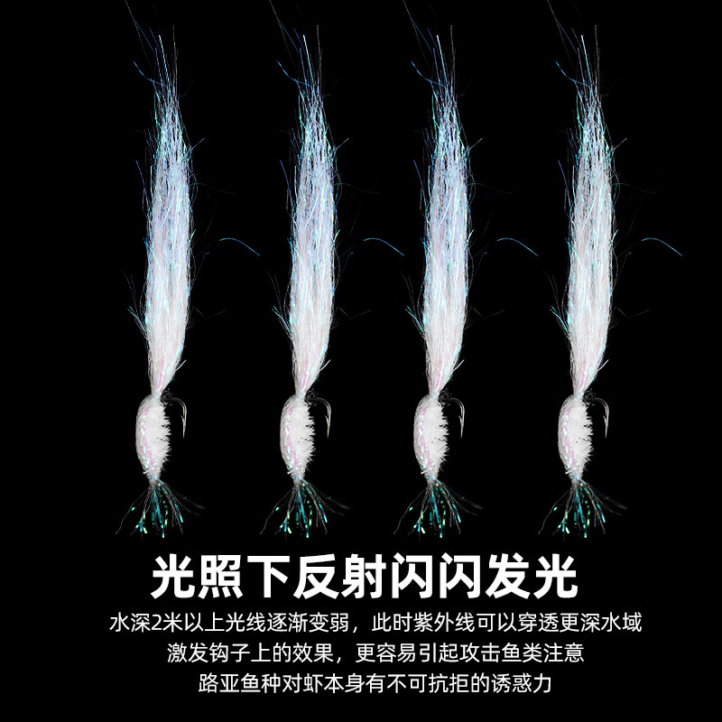 升级幻彩冰丝虾串钩翘嘴微物飞蝇钩防缠绕路亚仿生虾皮钩假饵套装