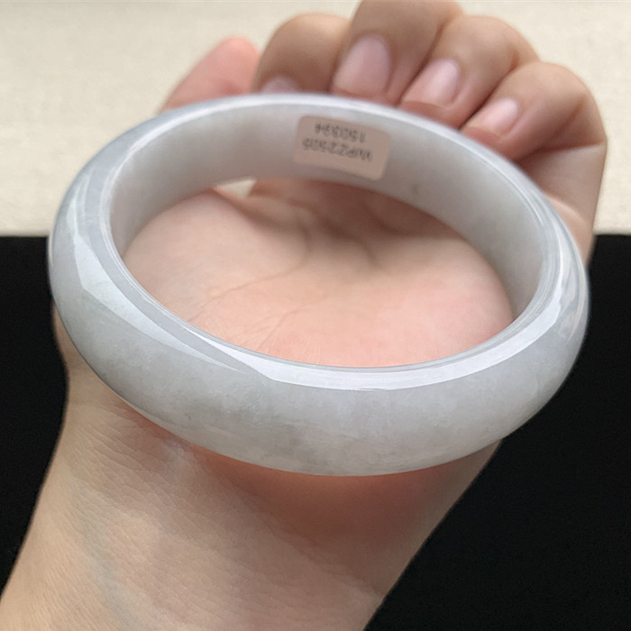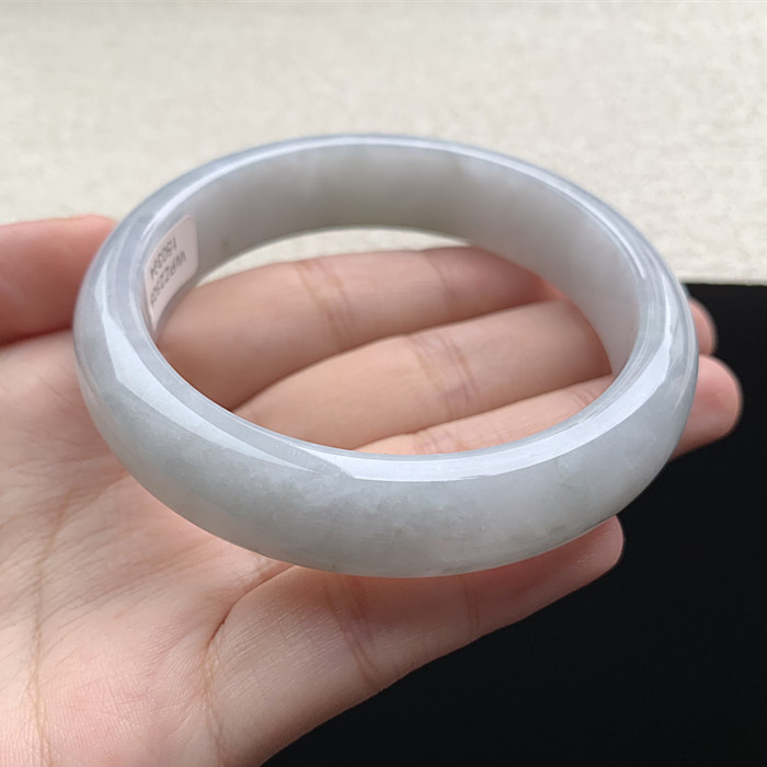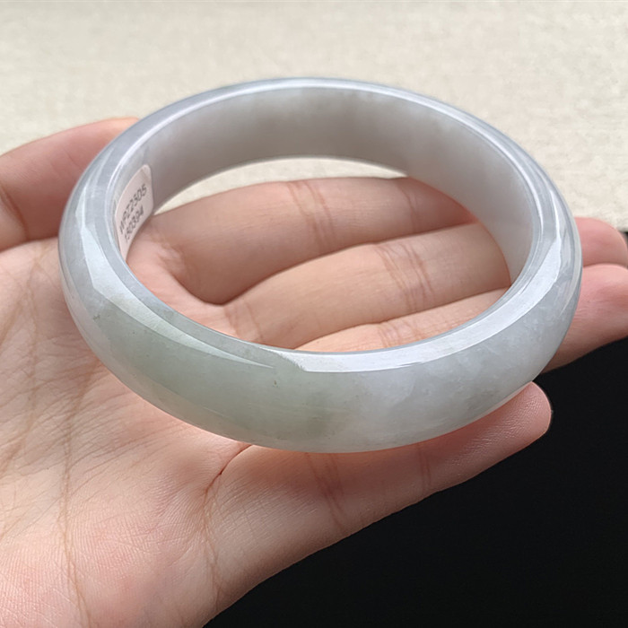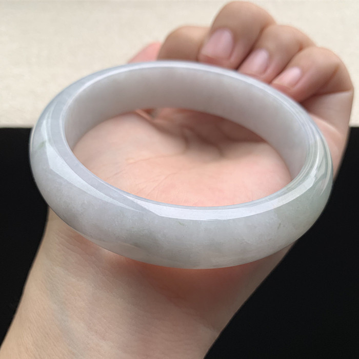 缅甸翡翠手镯A货58.6MM手镯油青飘花糯冰种玉手镯女款珠宝