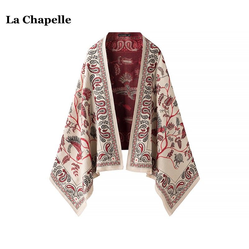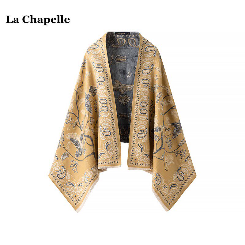 拉夏贝尔/La Chapelle空调房保暖围巾女春秋高级感民族风斗篷披肩
