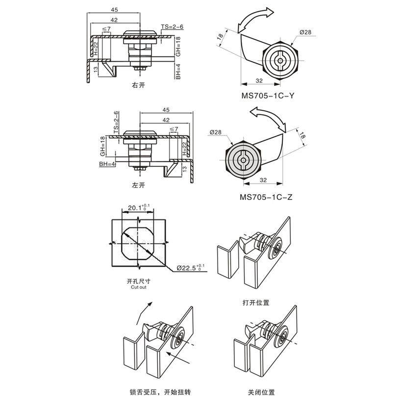 供应MS705-1C/MS705-3C(撞击型)电柜门锁 开关柜锁电器柜锁