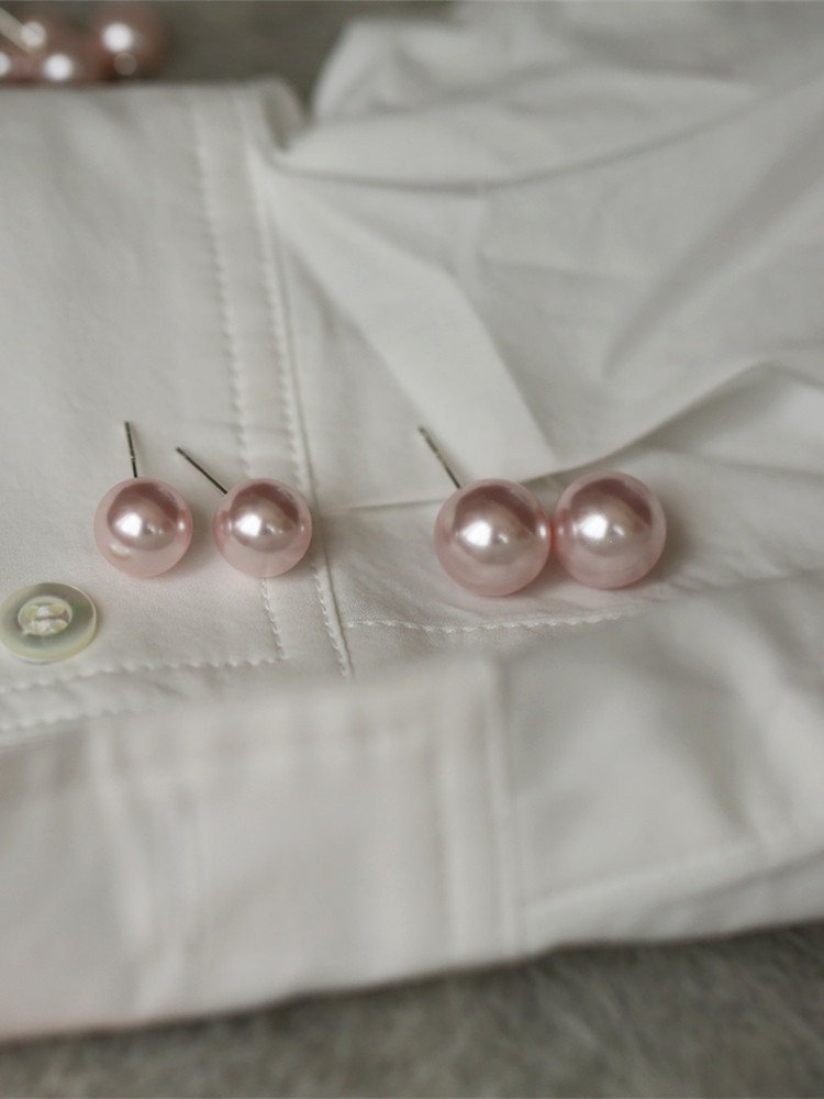 微风庄园 桃子波波 杨紫同款淡粉色925银施家珍珠耳钉耳夹女礼物