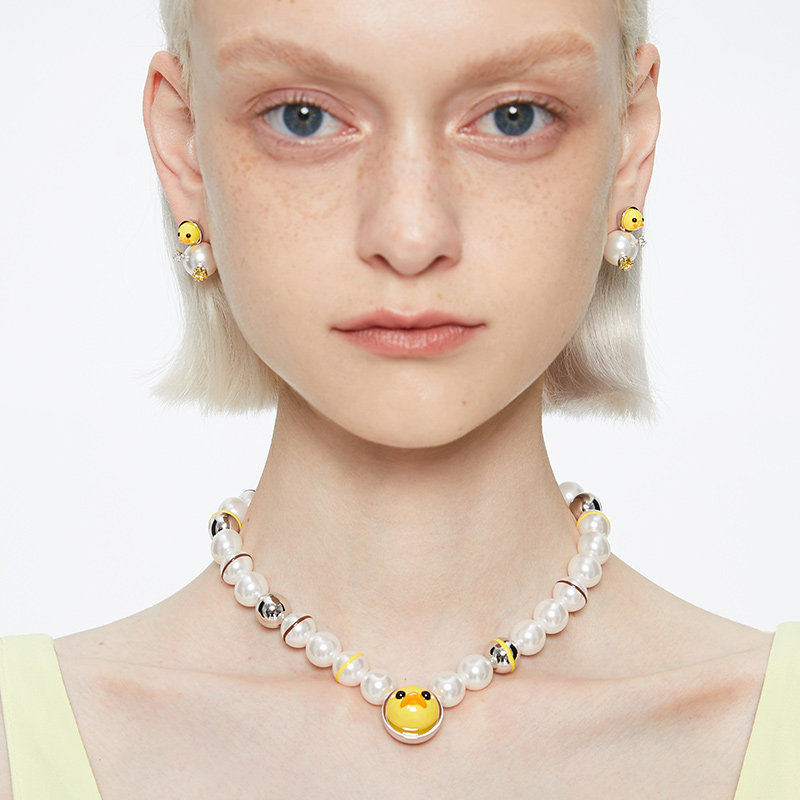 FWISH飞未夕 狂欢系列 小黄鸭头雪人珍珠耳钉925纯银女圣诞礼物