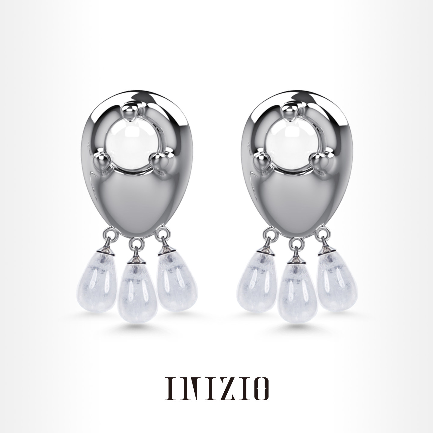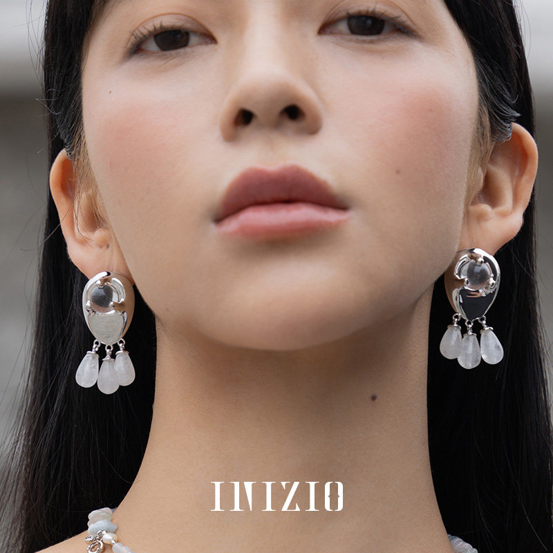 「周也同款」INIZIO 灵露水舞耳环白水晶原创设计高级气质耳饰