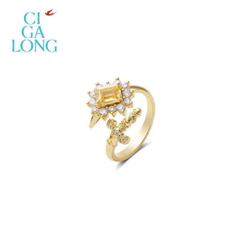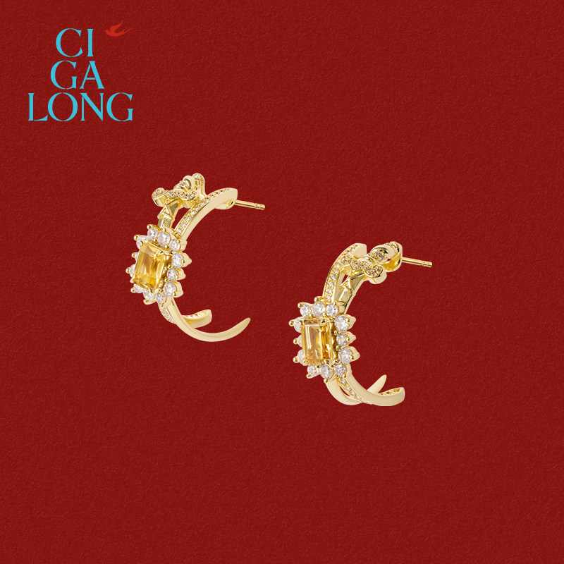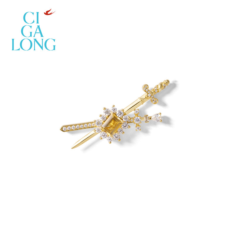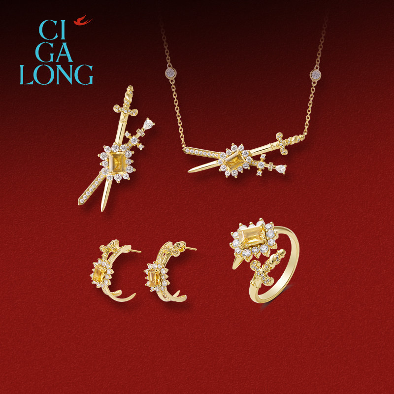 [新品]CIGALONG龙梓嘉双剑冰黄水晶项链耳钉名角系列新中式珠宝