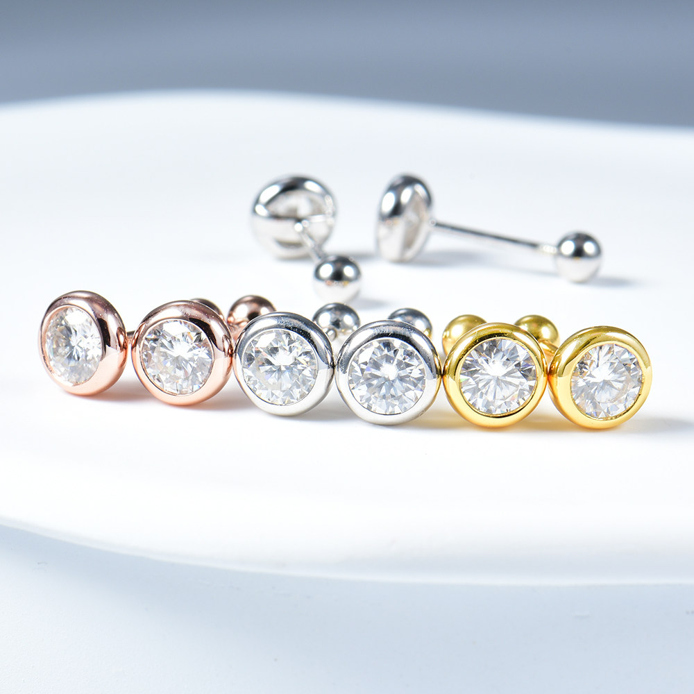 纯银防过敏莫桑钻泡泡耳钉睡觉可带螺丝耳针不怕丢情侣耳骨钉极简