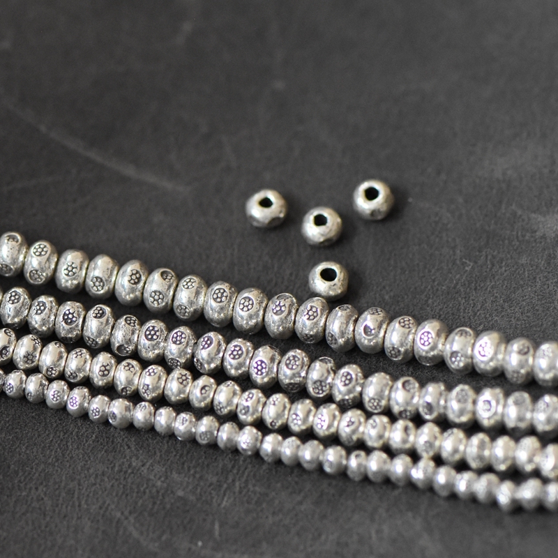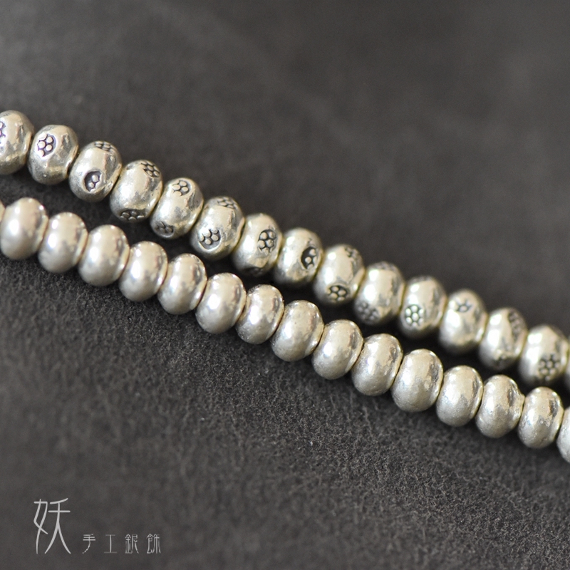 妖家 | 泰国清迈手工银 纯银DIY配件 印花 光面 算盘珠 XD01