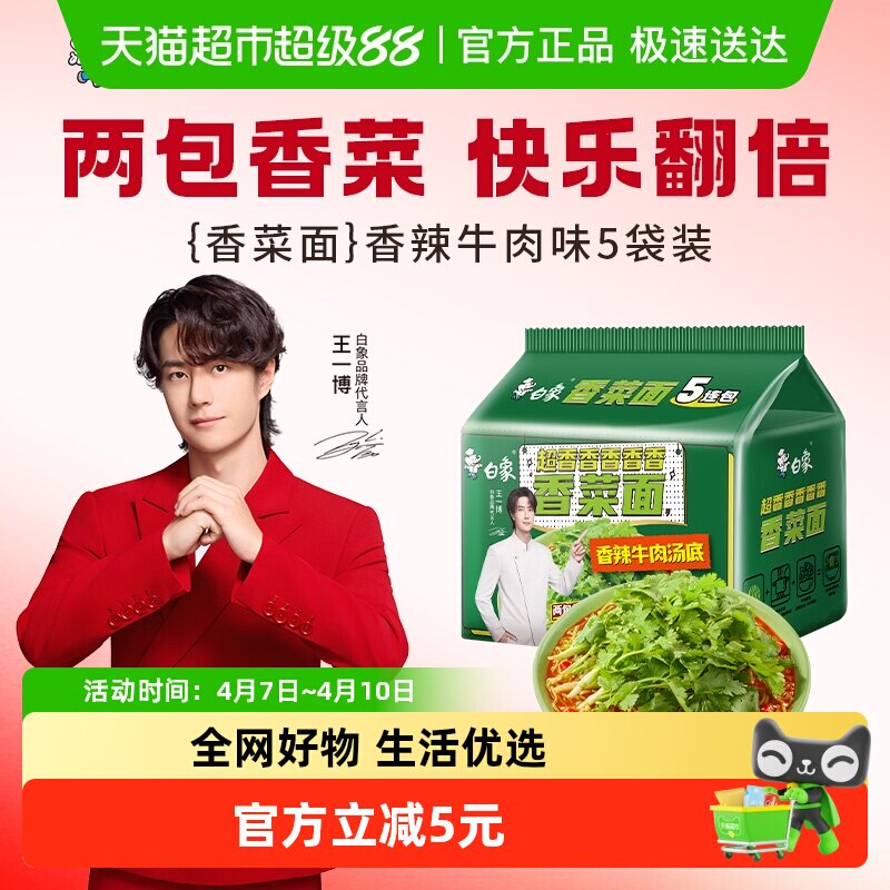 白象方便面香菜面115g*5袋泡面方便速食大把香菜