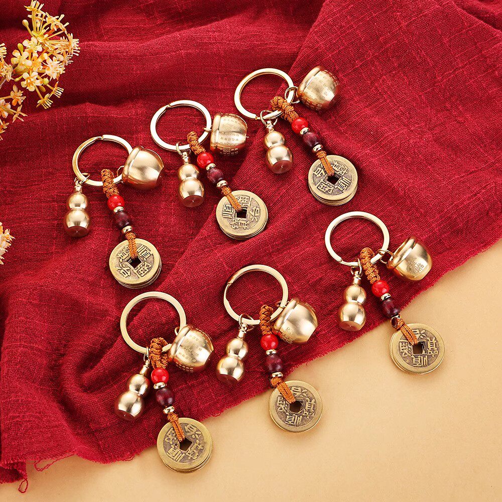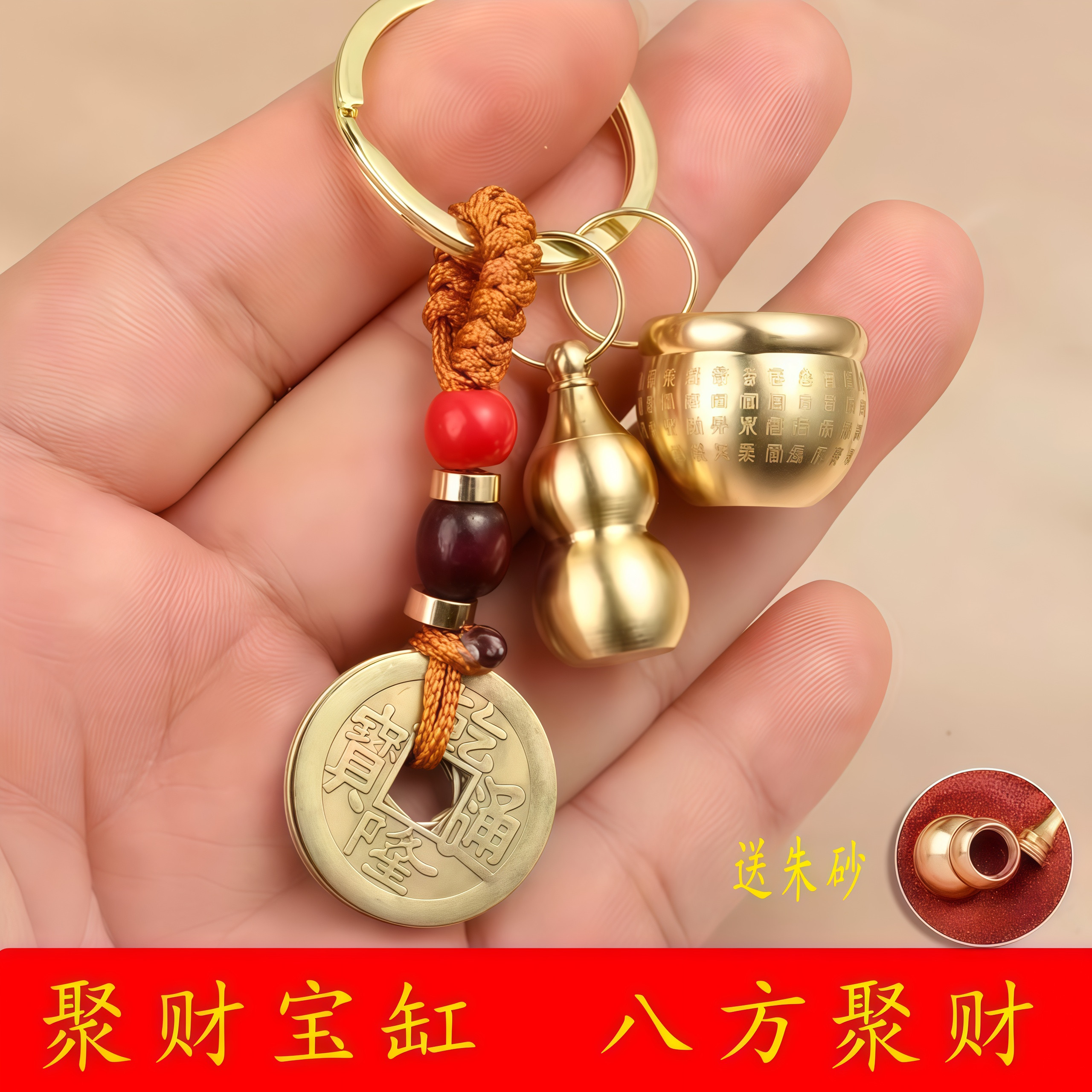 百福聚财缸纯黄铜米缸聚财铜缸聚宝盆钥匙扣招财进宝挂件摆件葫芦