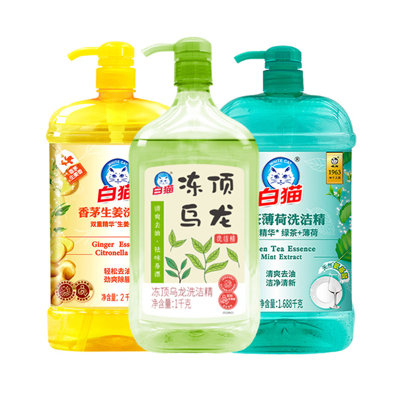 白猫洗洁精食品级果蔬用柠檬红茶清爽薄荷去油生姜祛味厨房清洗剂