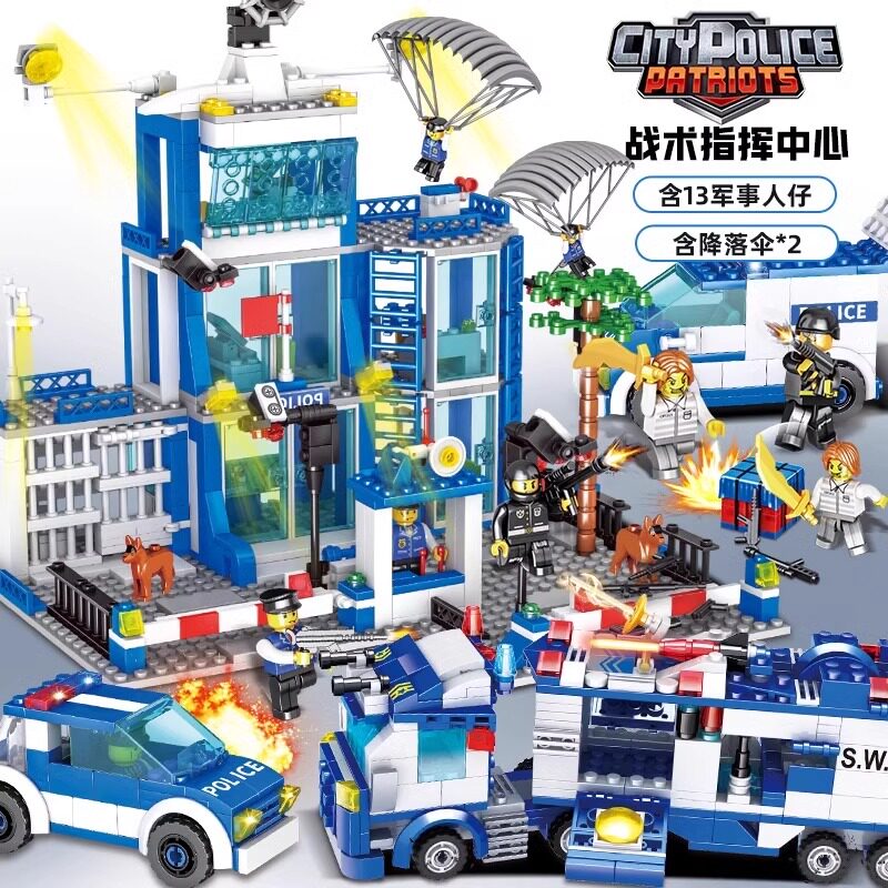 积木城市警察总局系列大型坦克玩具男孩子小颗粒拼装汽车儿童礼物