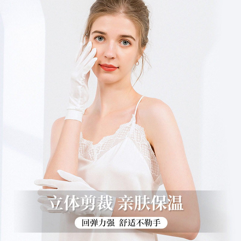 2026桑蚕丝真丝针织五指睡眠保湿手套透气开车防晒礼仪手套夏