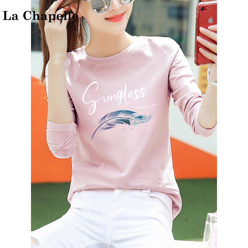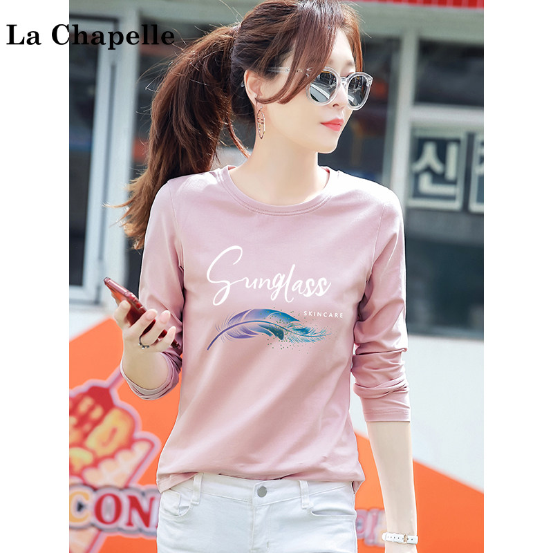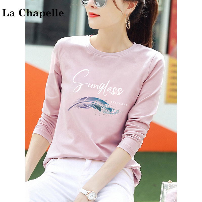 2件】拉夏贝尔纯棉长袖t恤女春装2026年新款宽松内搭打底衫上衣服