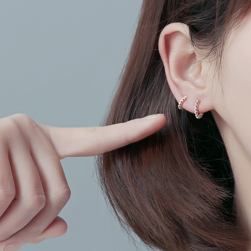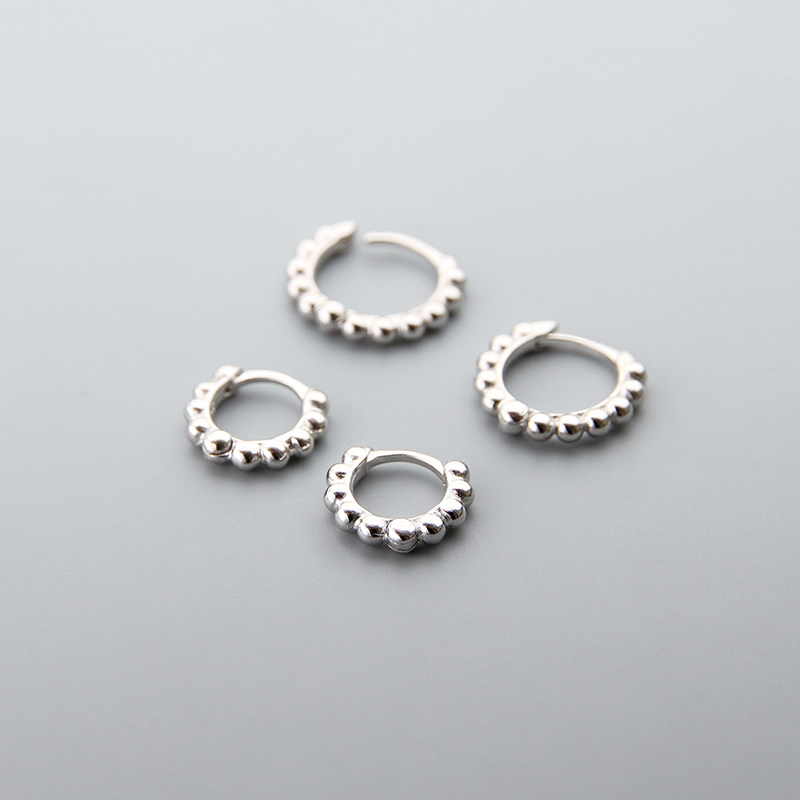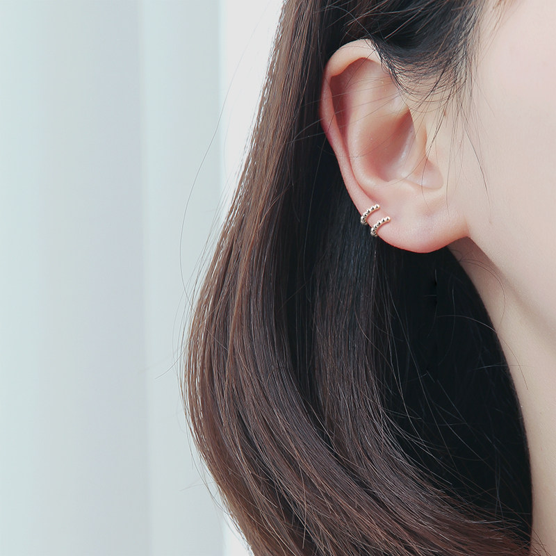 925银耳环女简约气质光珠耳骨扣百搭小巧圆珠豆豆小众免摘耳扣男