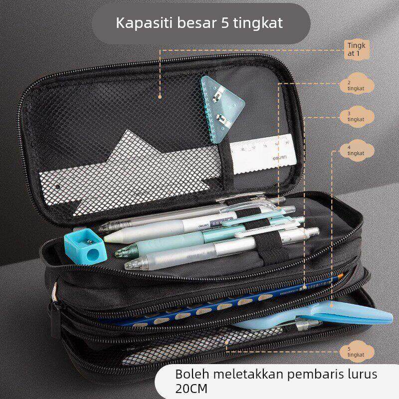 得力简约大容量笔袋学霸学生用文具盒铅笔盒男高颜值小学生初中文