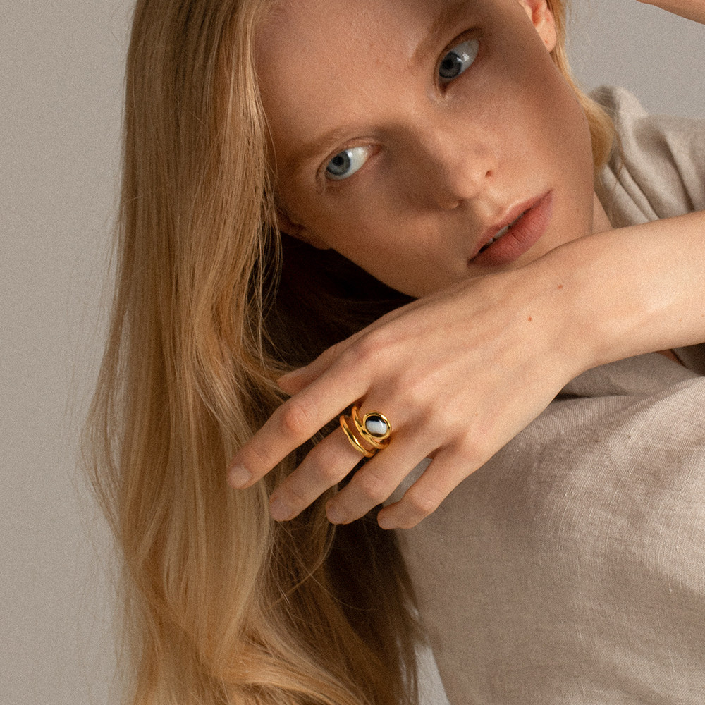 复古宝石戒指UNFOLDS 轻奢百搭小众高级感开口戒指环女63 OAK AVE
