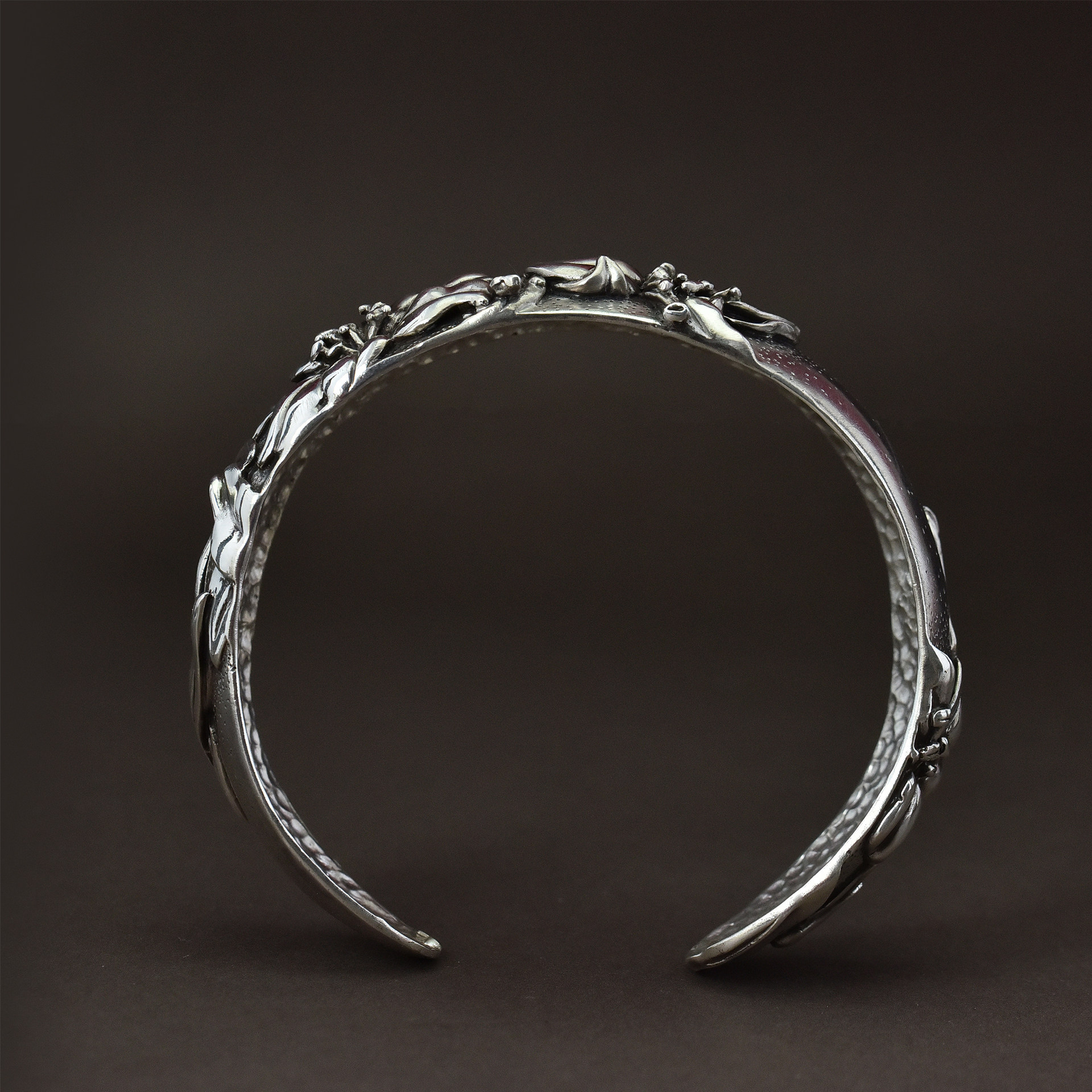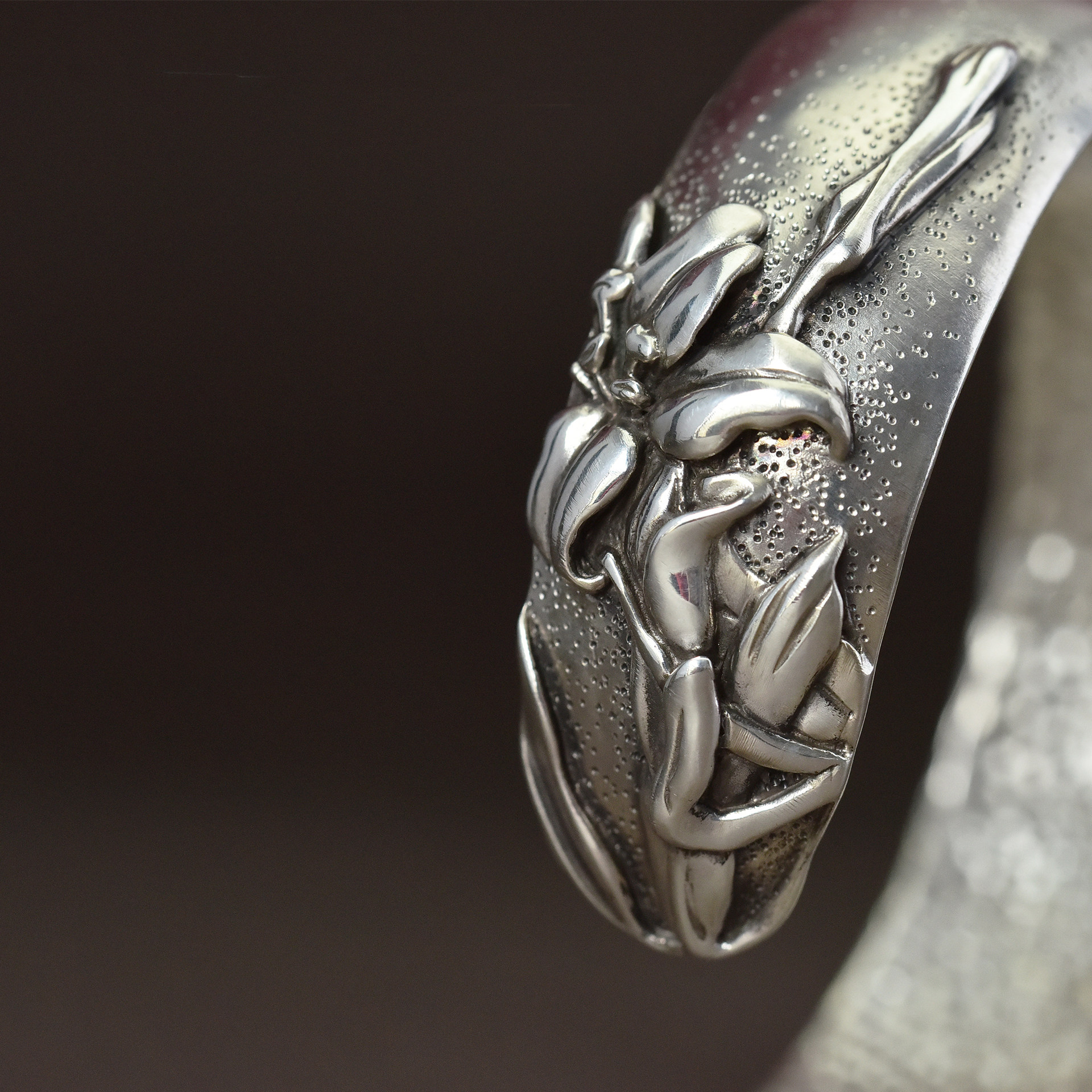 《百合》九九倾城原创/国风纯银手镯百合花高级感990足银实心手镯