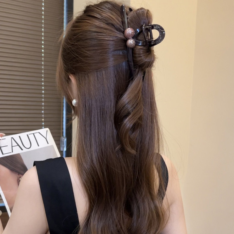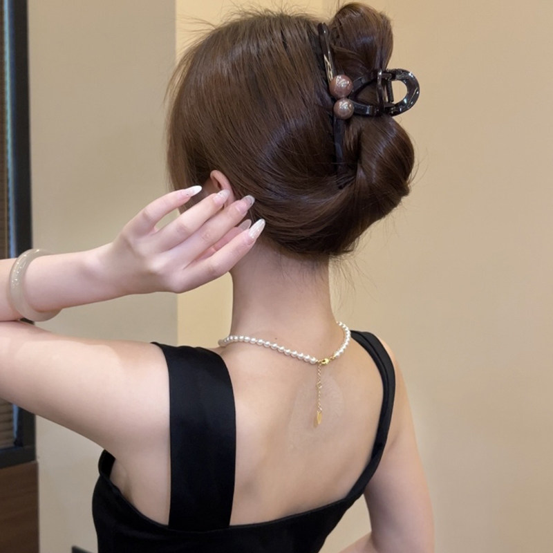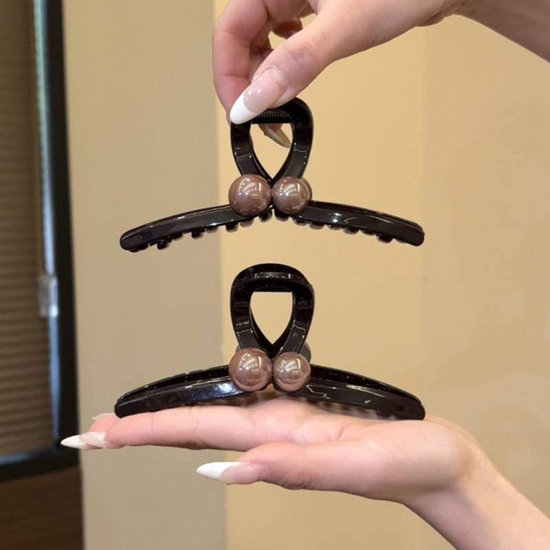 新款高级感双珠抓夹气质简约鲨鱼夹女韩系优雅大号发量多盘发夹子
