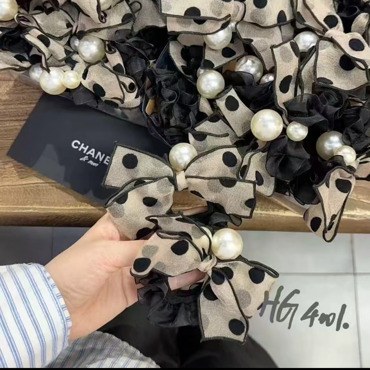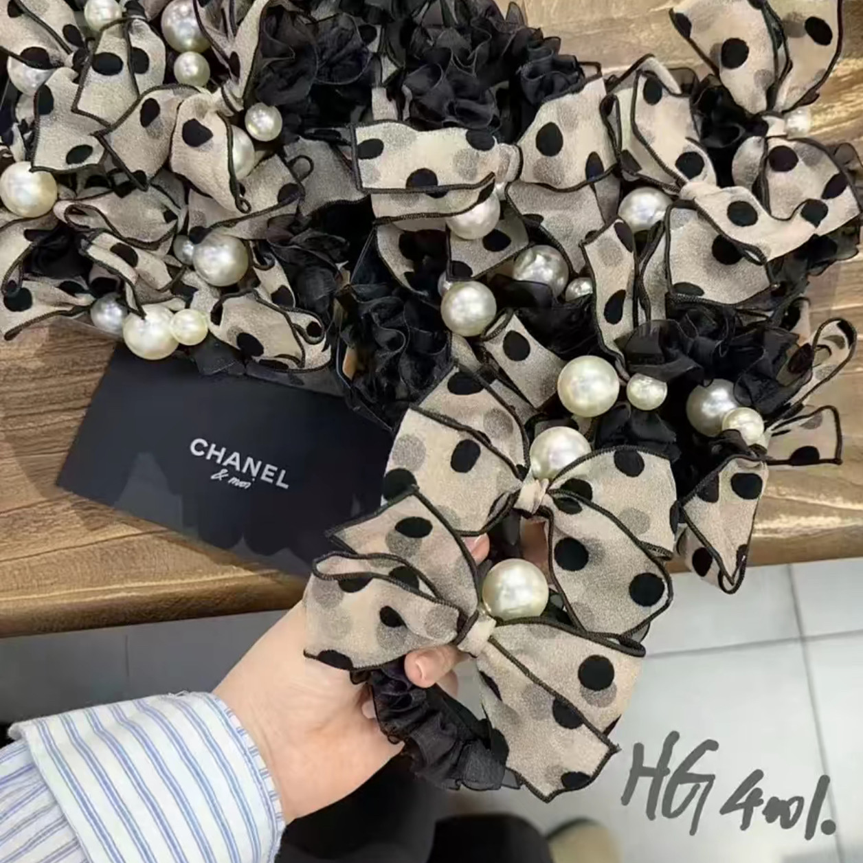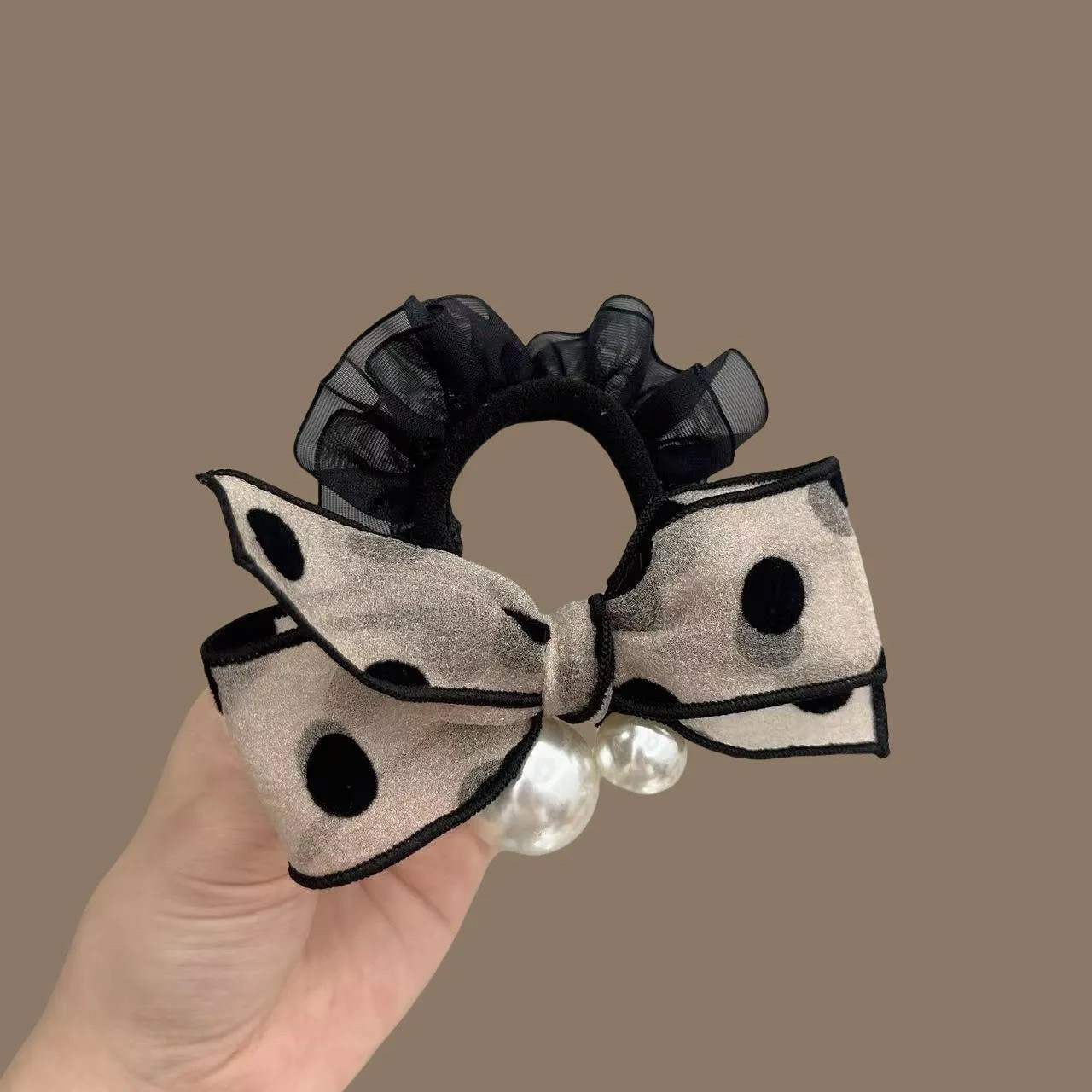 复古小香风波点蝴蝶结珠珠发圈气质时尚无接缝扎发马尾丸子头发圈