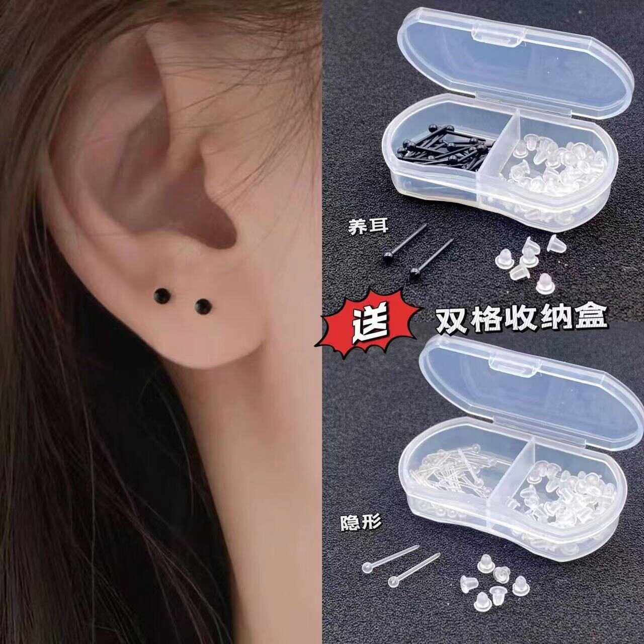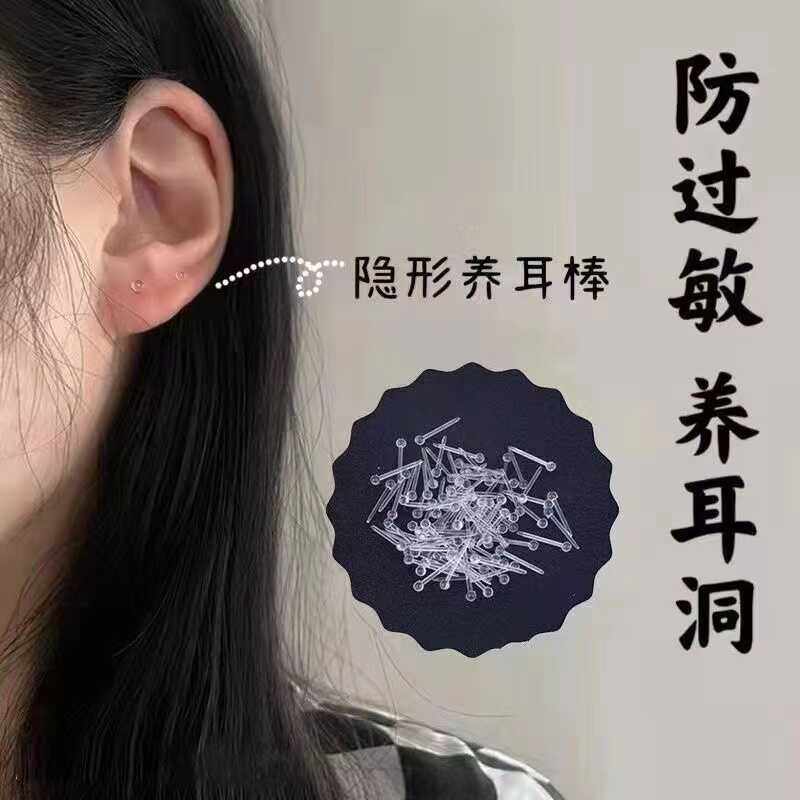 爆款网红透明隐形耳棒睡觉免摘耳钉养耳塑料防堵不易过敏耳饰男女