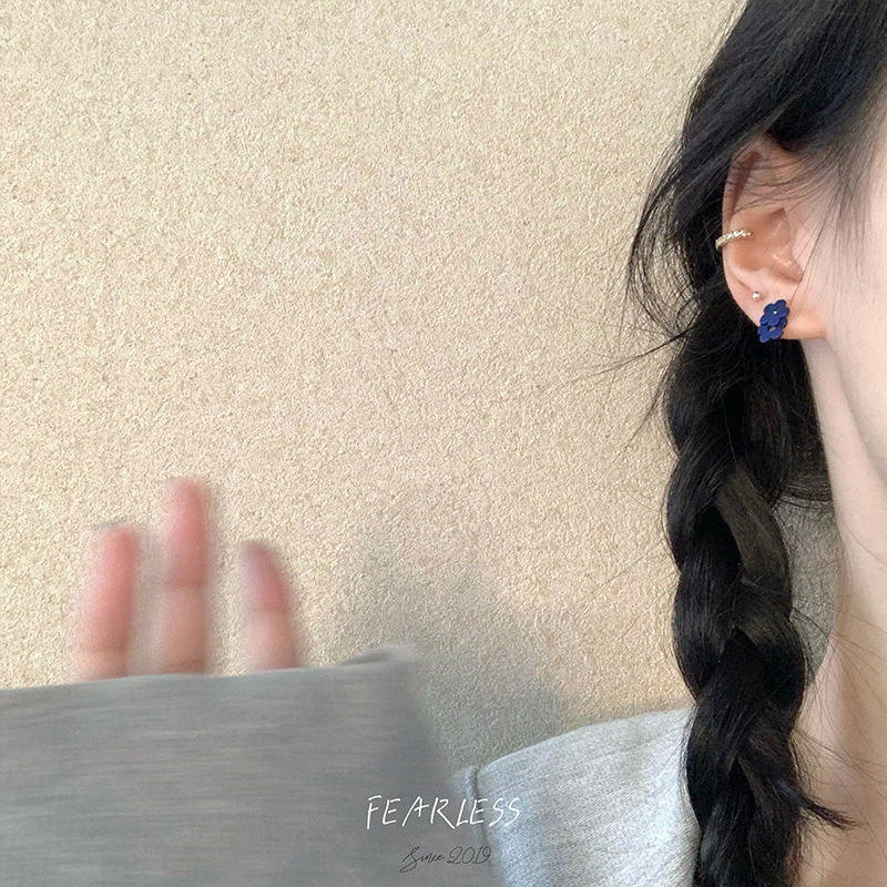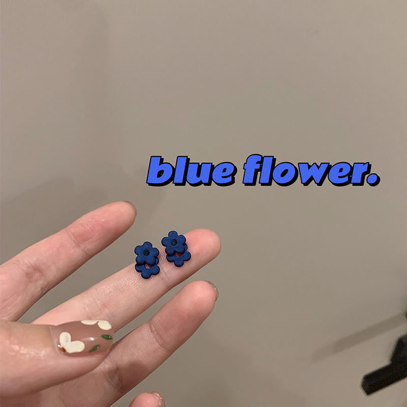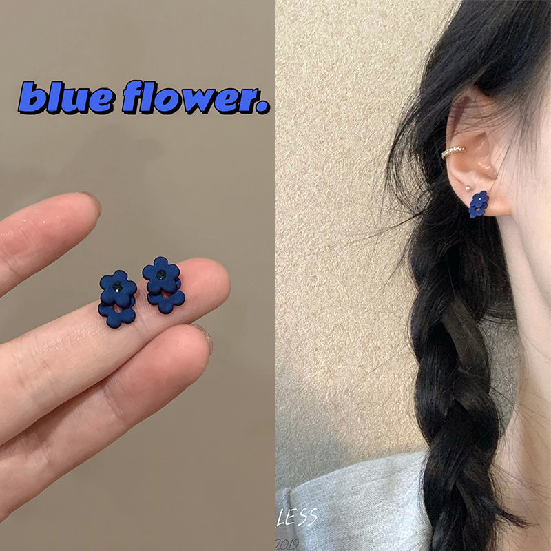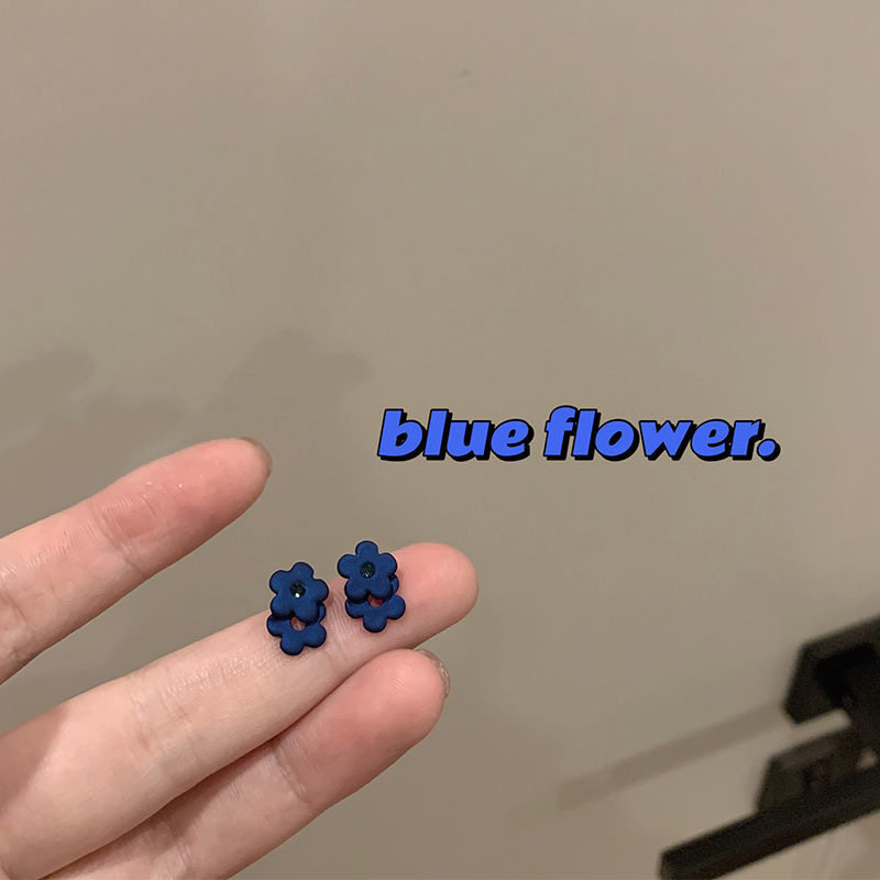 韩国精致迭层小花耳环宝蓝色耳钉耳环女2023新款潮气质冷淡风
