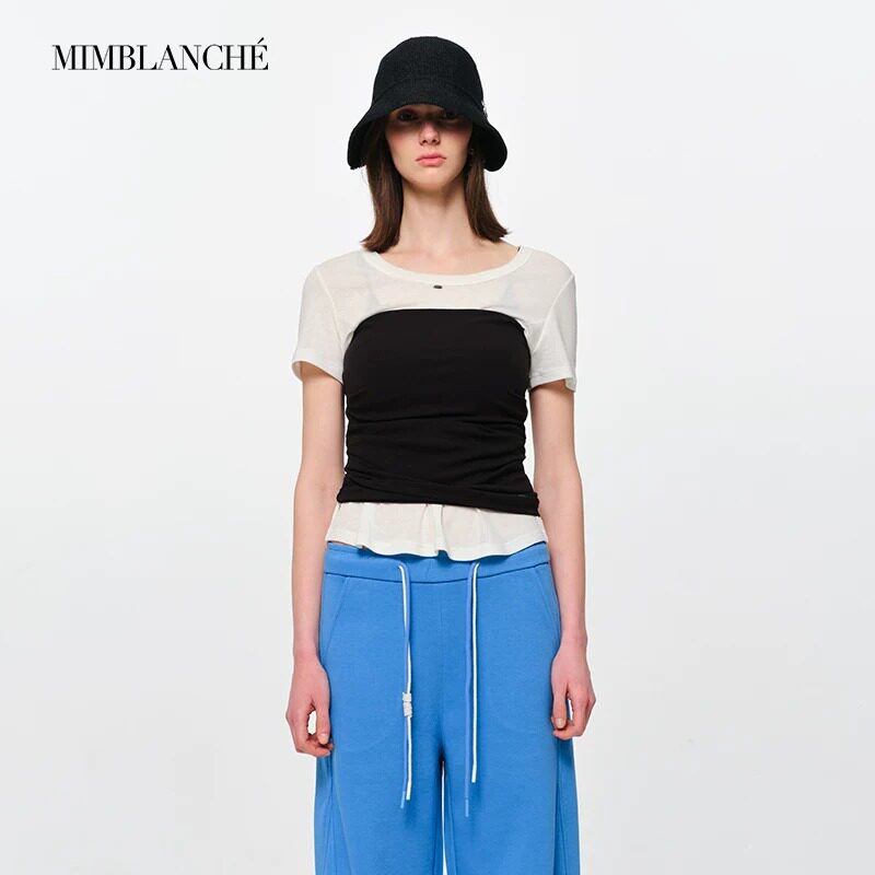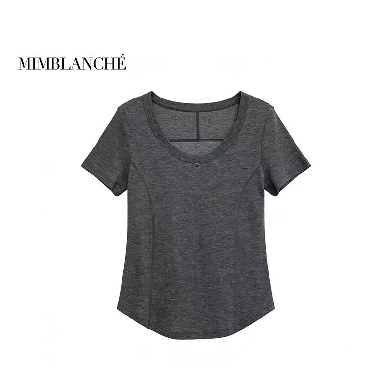 MIMBLANCHE 26春夏新款天丝羊毛U领修身短袖打底T恤女