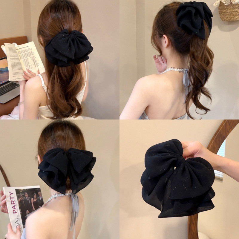 气质黑色满天星蝴蝶结抓夹新款百搭发夹马尾夹鲨鱼夹大号发饰头饰