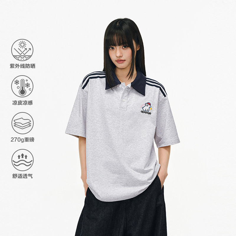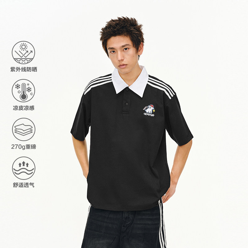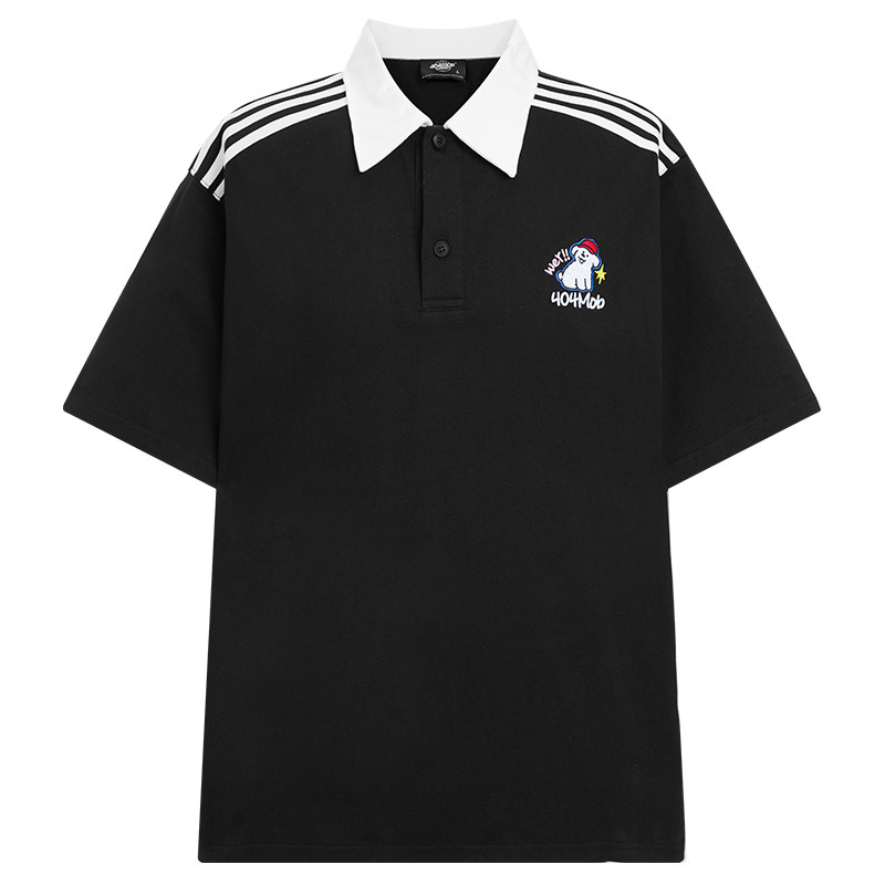 404MOB潮牌刺绣小狗POLO衫短袖t恤女男夏季宽松运动条纹半袖上衣