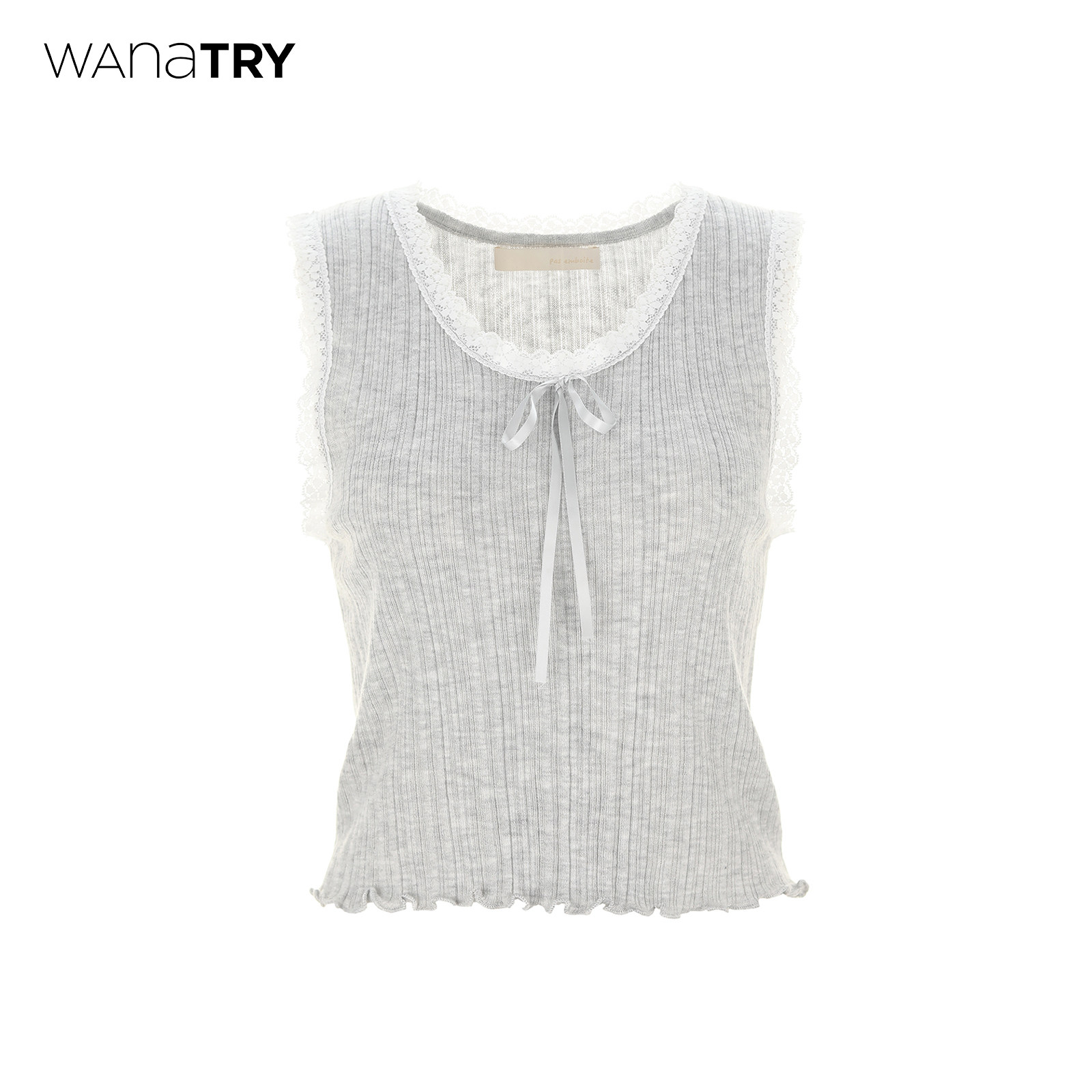 wana try蕾丝边蝴蝶结减龄背心春夏新品灰色韩系简约甜美内搭女