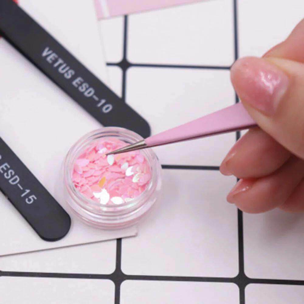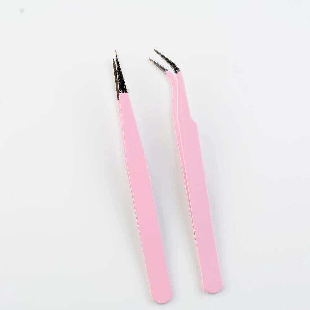 Stainless Steel Pink Straight Bend Tweezer For Eyelashes Ext