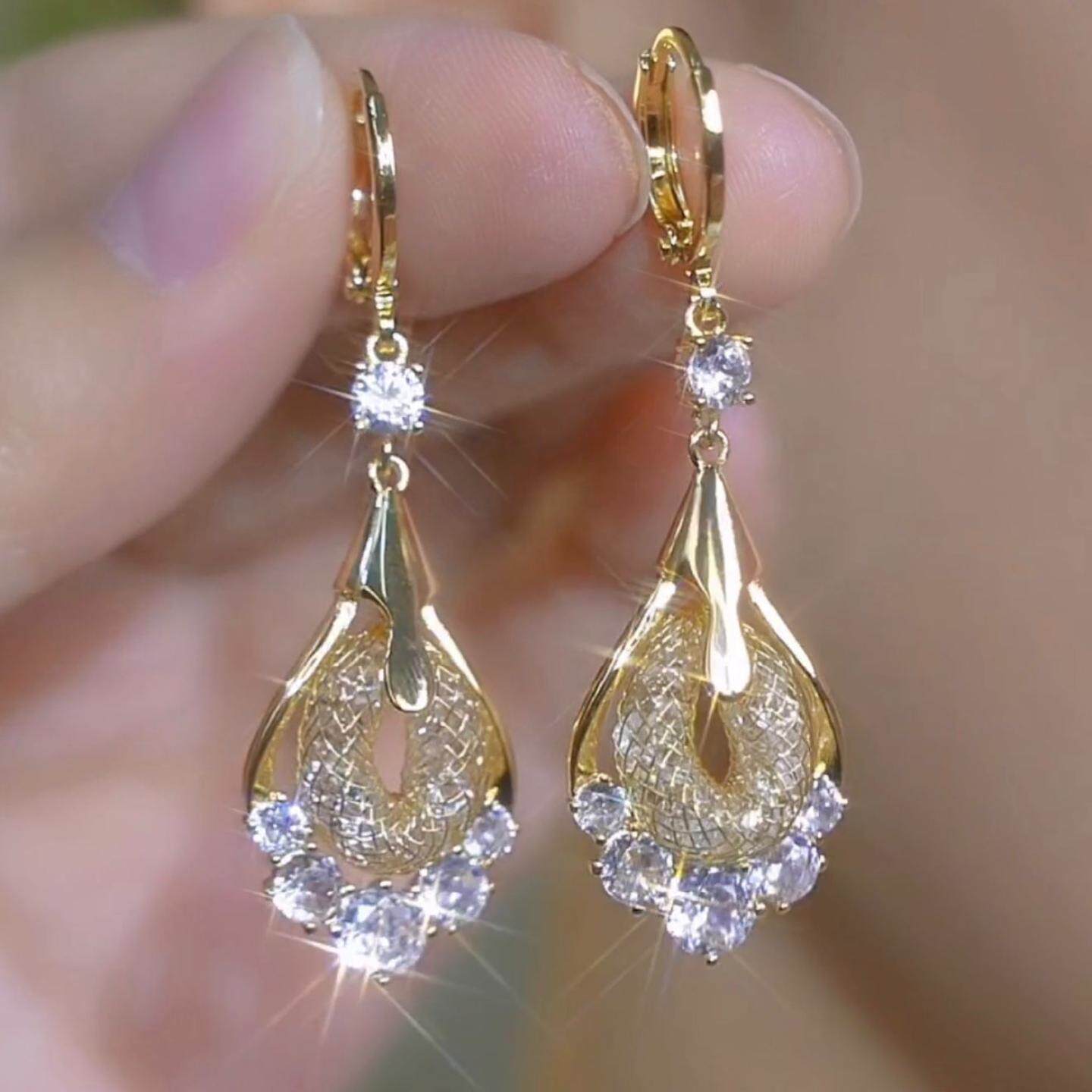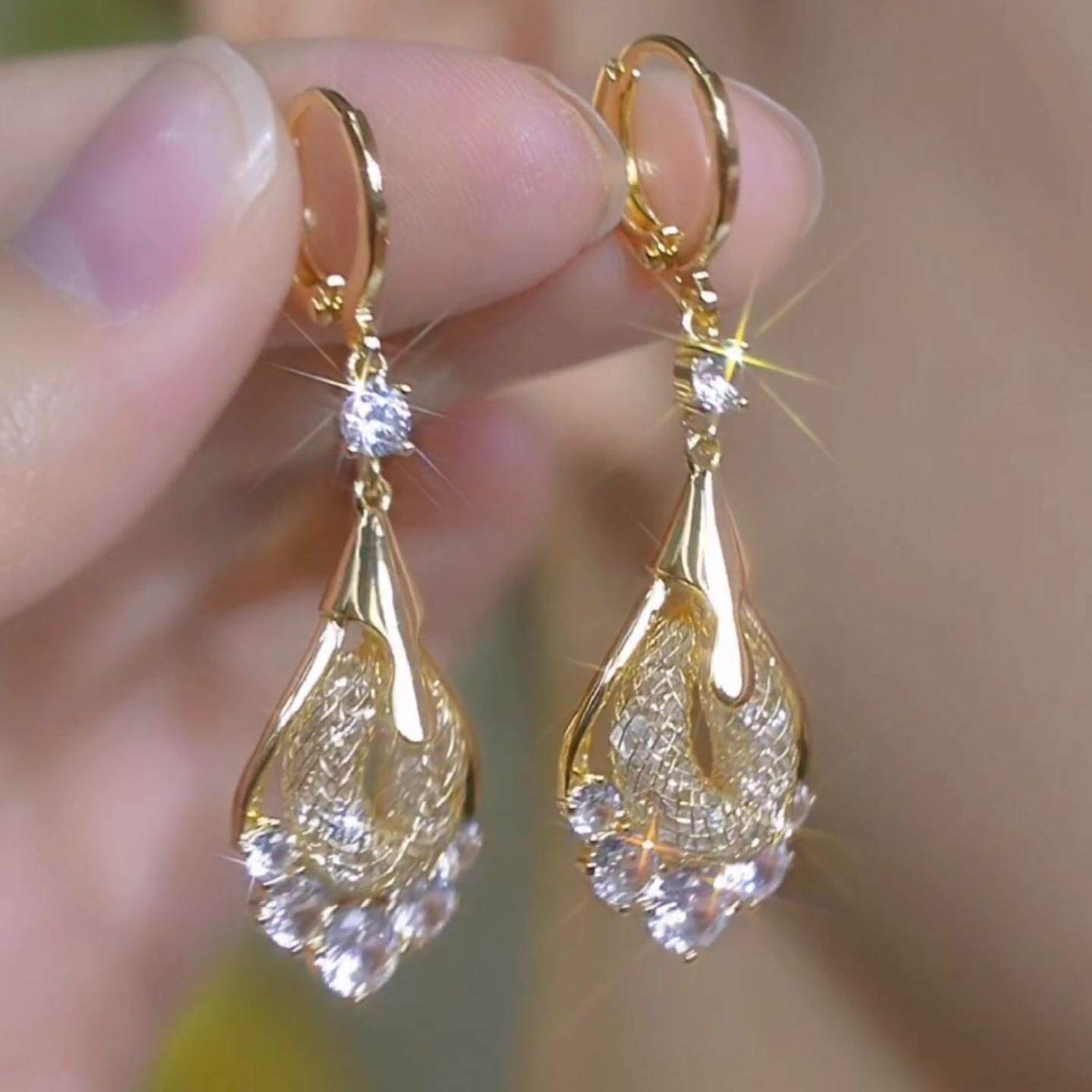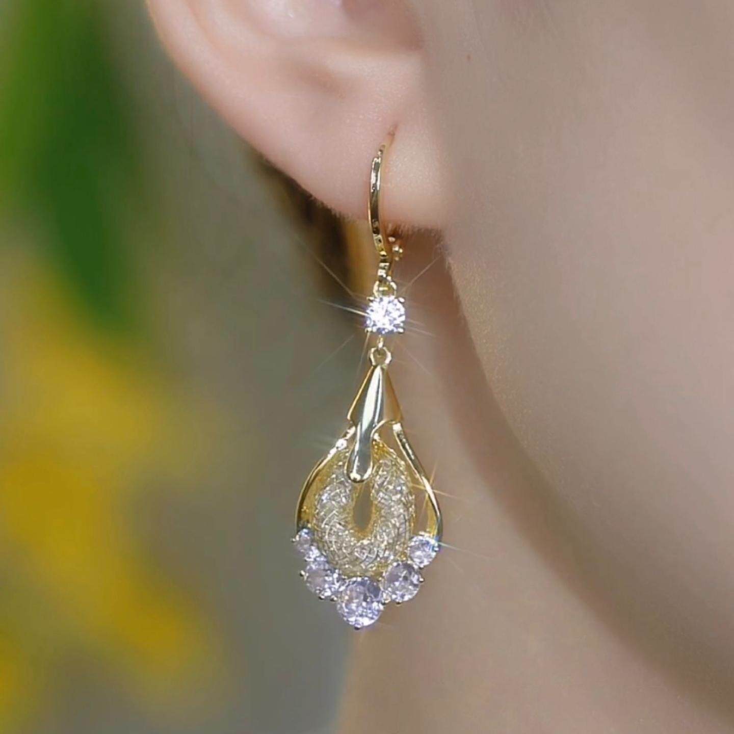 新款咖色水晶水滴银耳环9999纯银针女轻奢高级感时尚大气耳扣耳饰