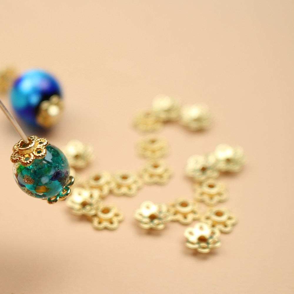 金色铜制保色珠托花托隔片DIY饰品配件材料8mm小梅花形
