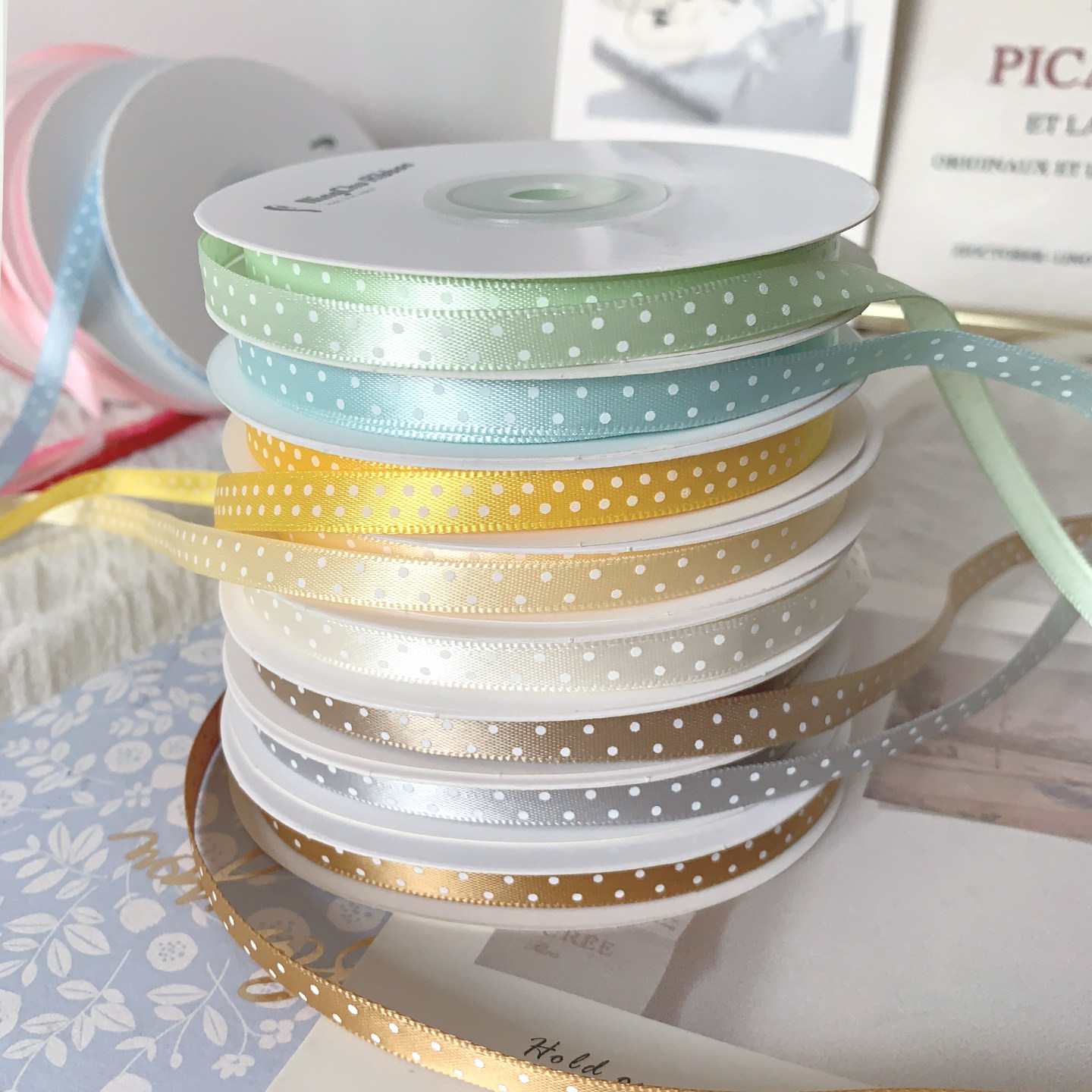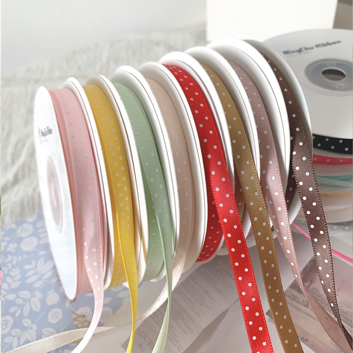 0.6cm波点带花束礼品包装丝带DIY手工材料蝴蝶结彩带布带缎带织带