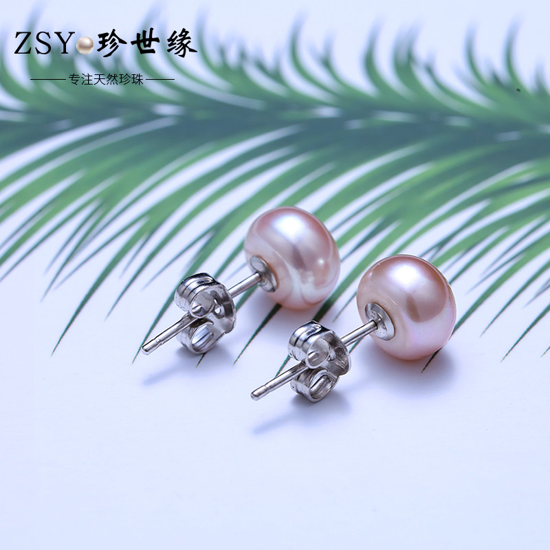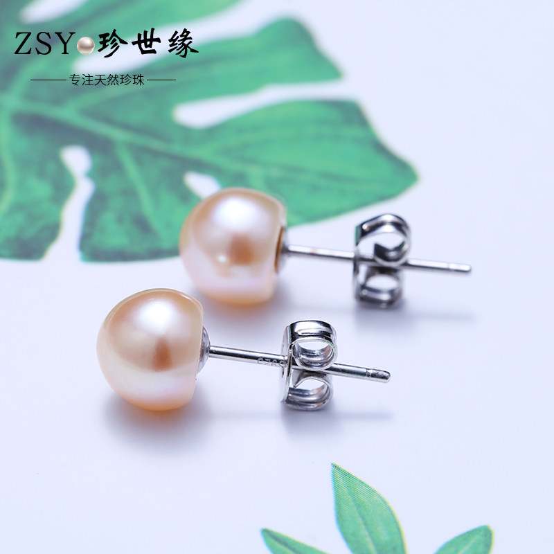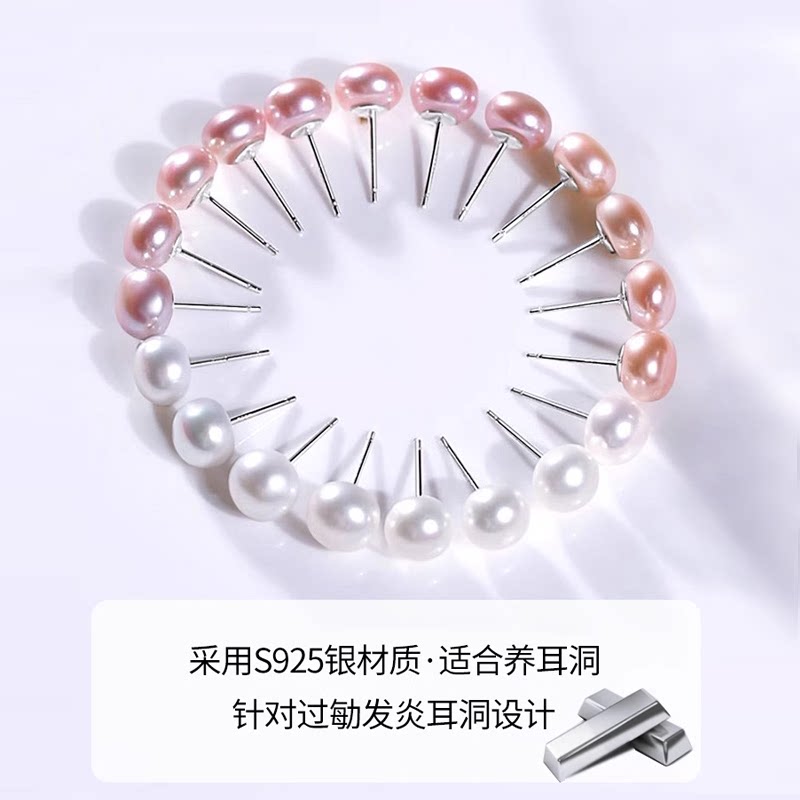 香港珍世缘 梓鸾 近圆形淡水珍珠耳钉S925银镶嵌时尚年轻款耳饰