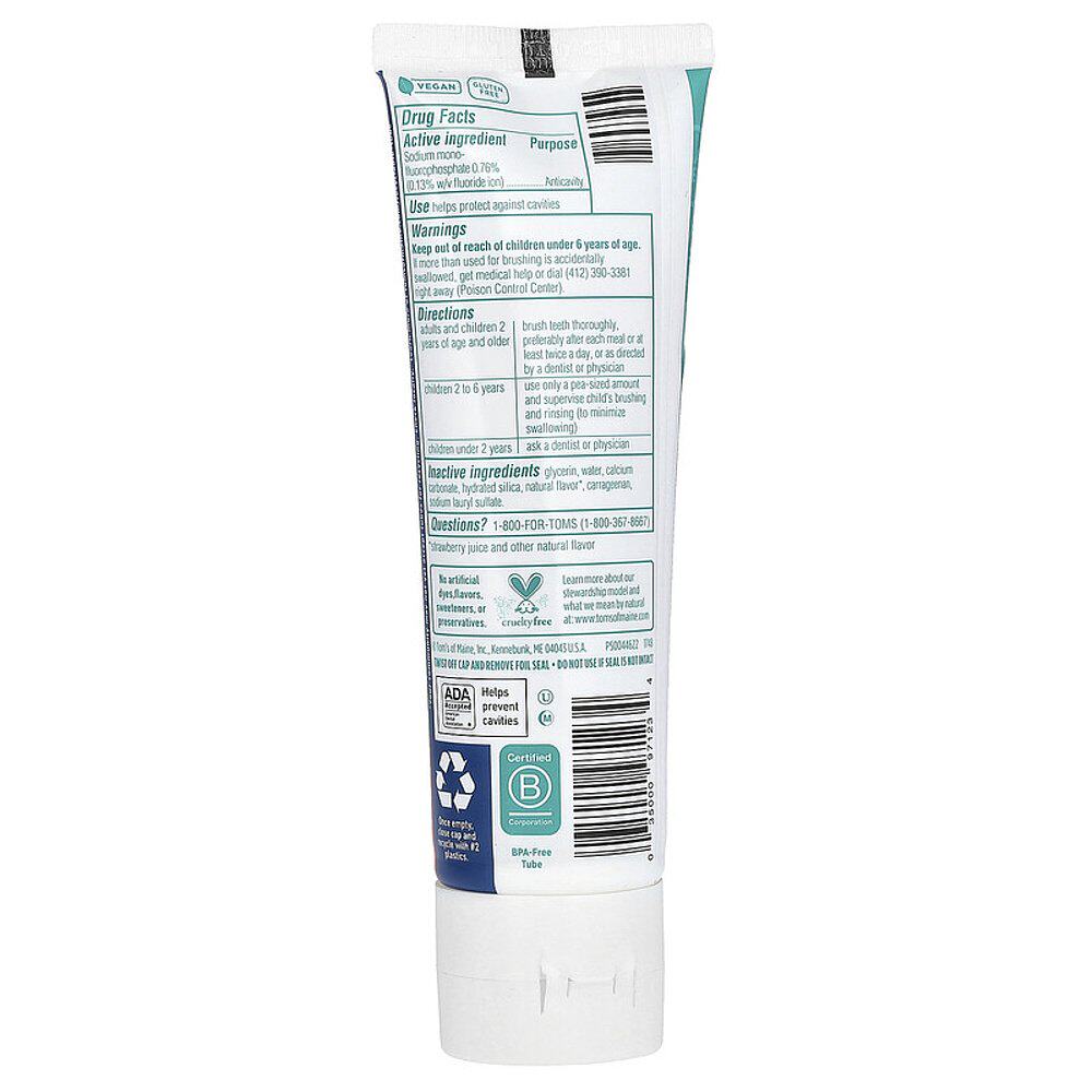 香港直发Tom'S Of Maine儿童牙膏草莓清洁温和保护牙齿145g