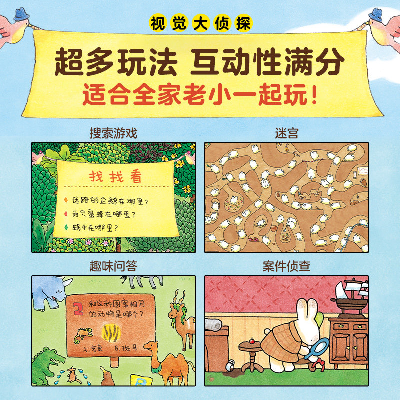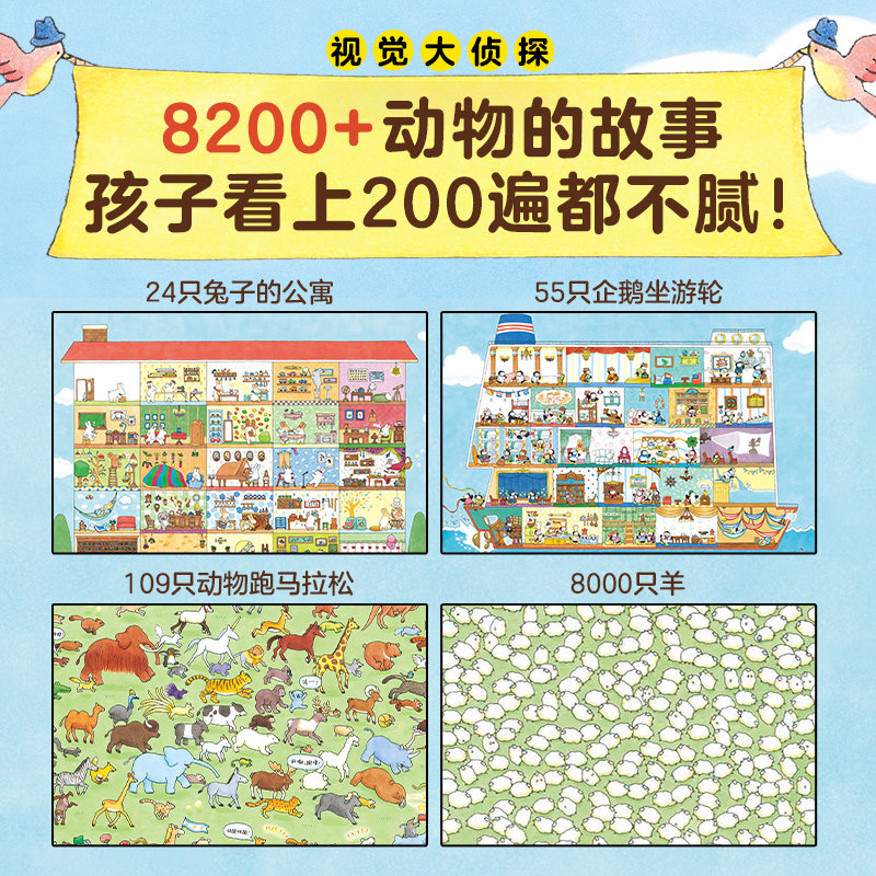 【点读版精装】109只动物的捉迷藏大赛马拉松大赛野花遥视觉大侦探大发现观察专注力培养游戏绘本大书企鹅游轮兔子公寓好多好多羊