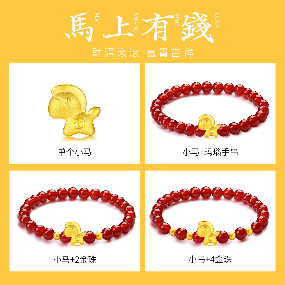 千年珠宝黄金手链女生肖马足金999马上有钱红玛瑙转运珠手串新款