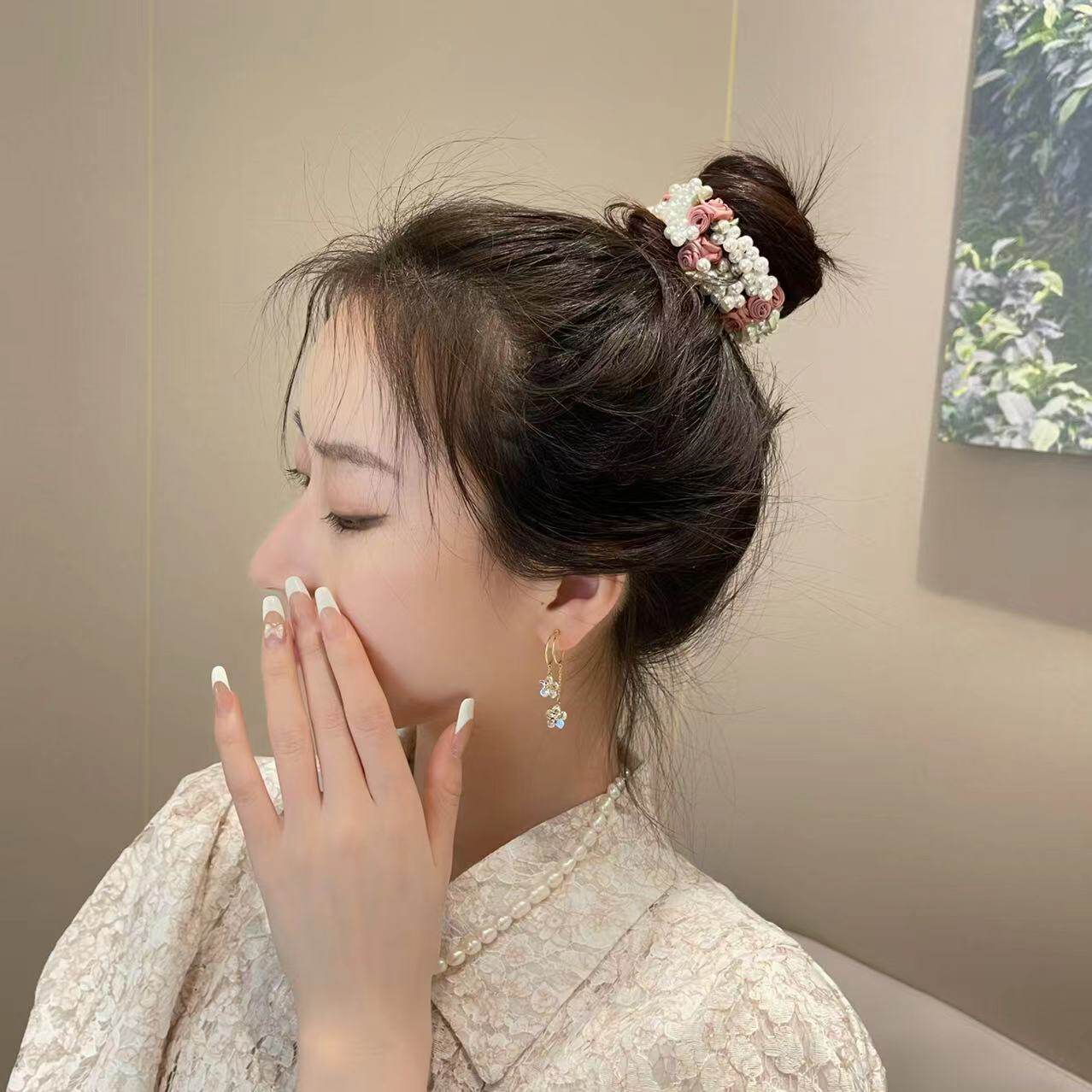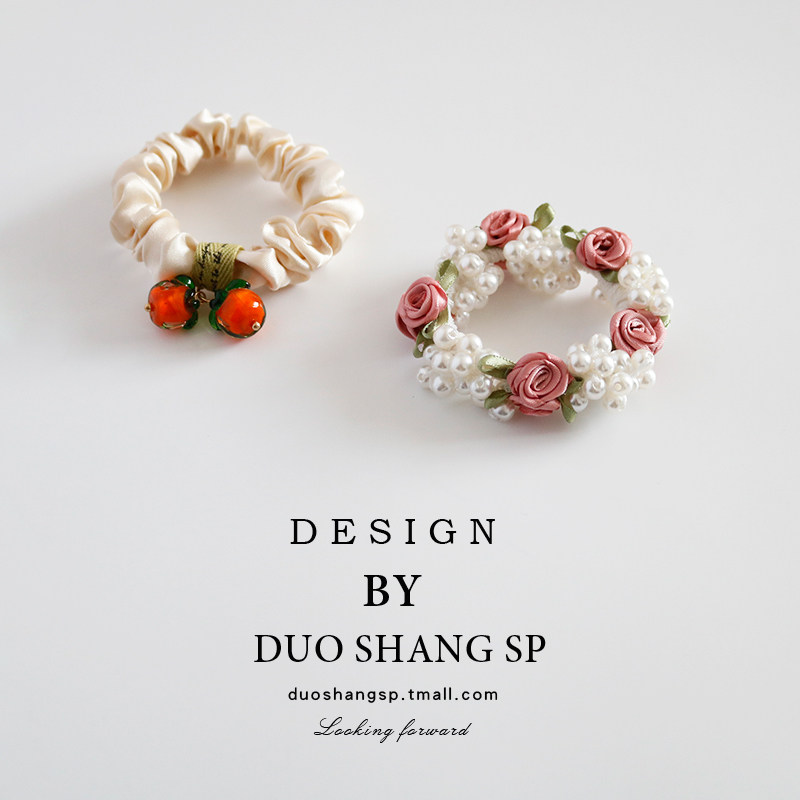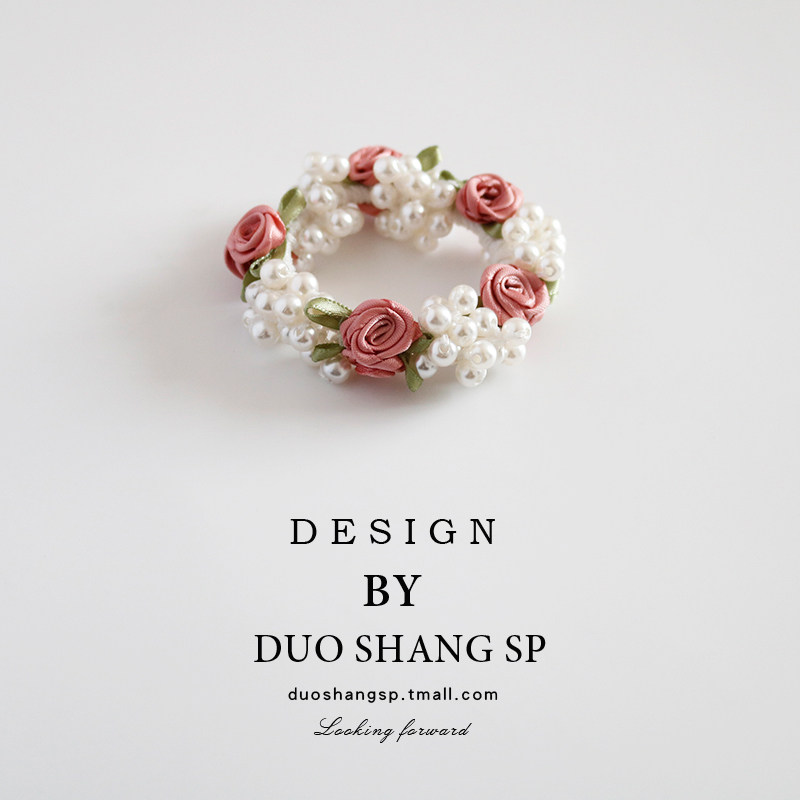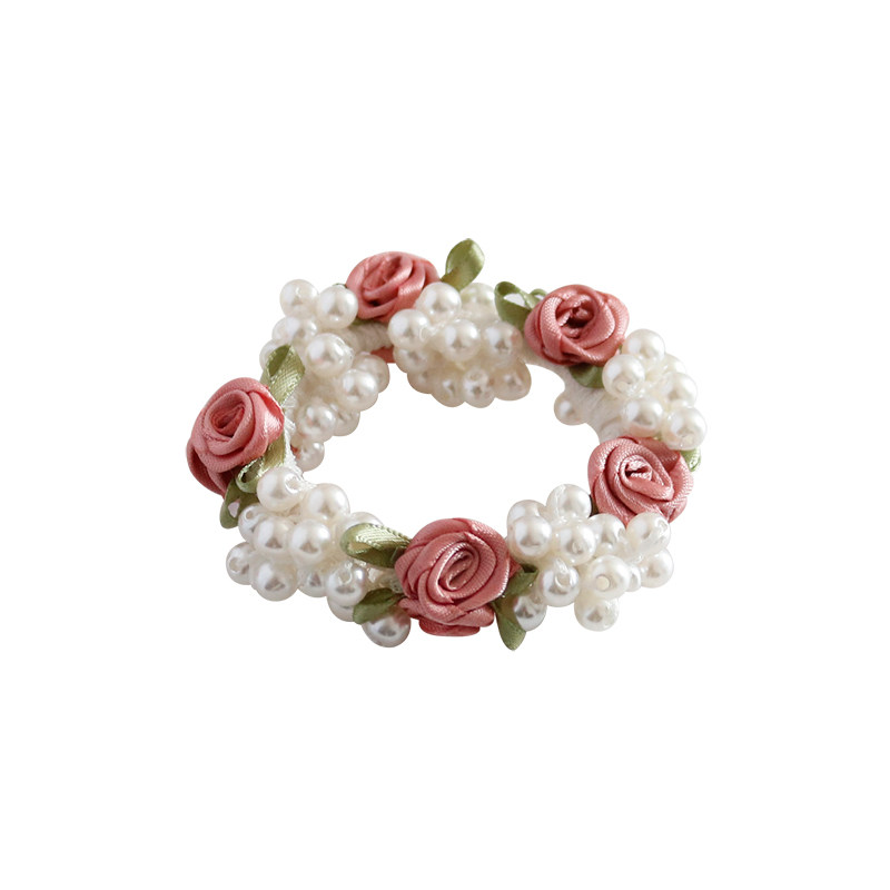 自留款!发绳 甜美粉色玫瑰花朵发圈少女心超仙头绳仿珍珠发饰品
