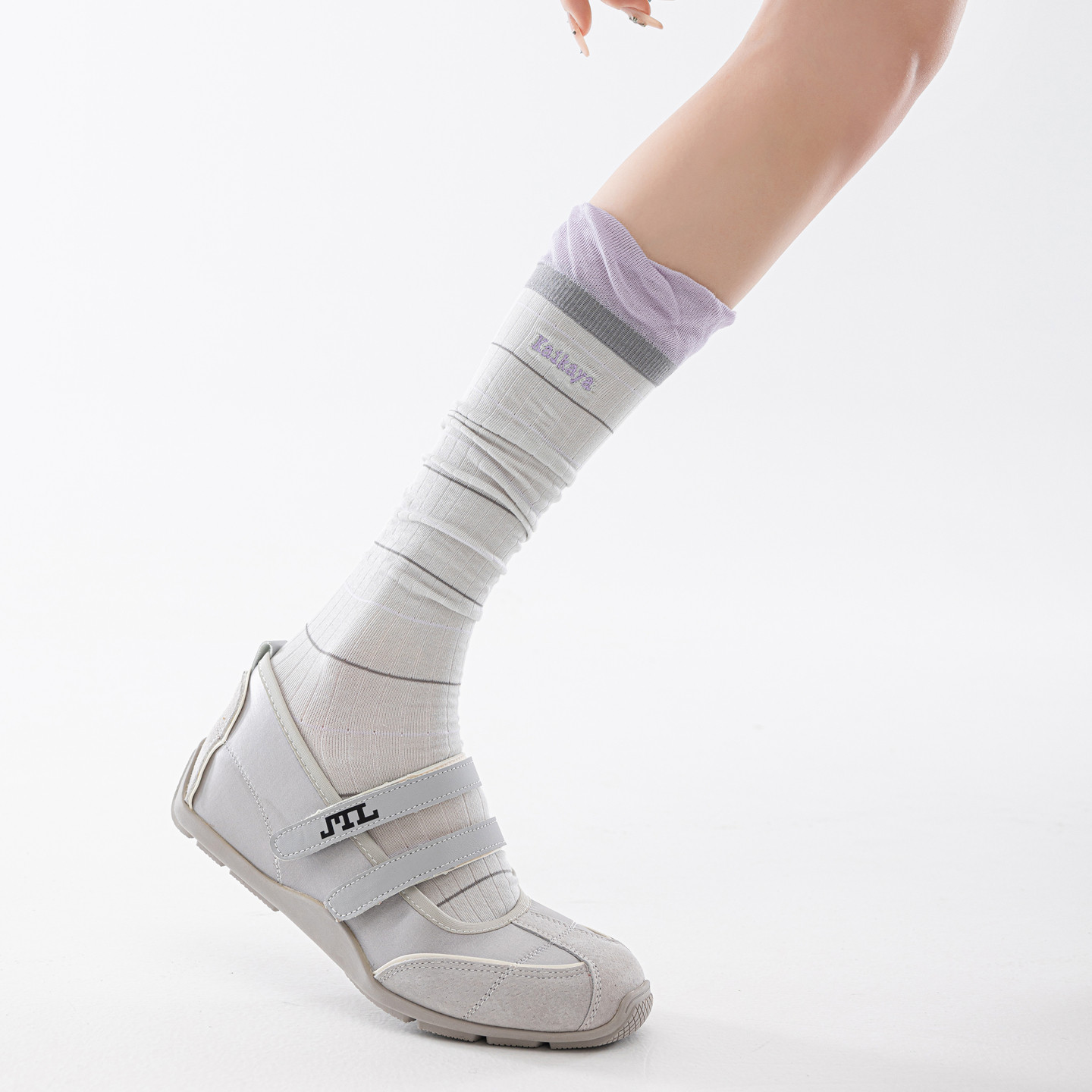 微压显瘦灰色小腿袜春夏季薄款透气长筒袜miu花苞口长袜配阿甘鞋