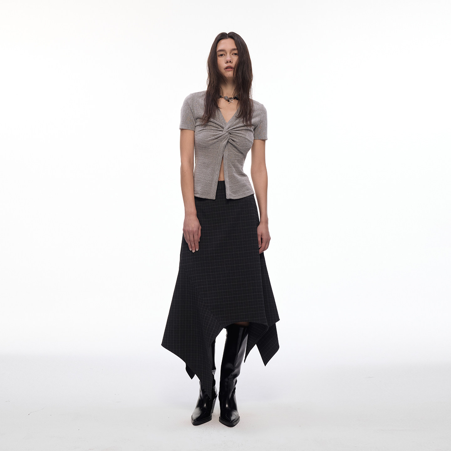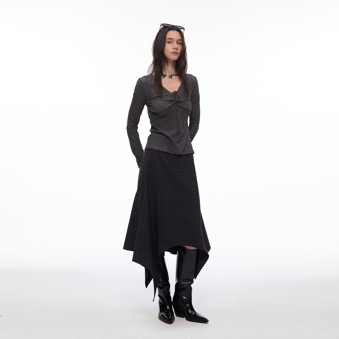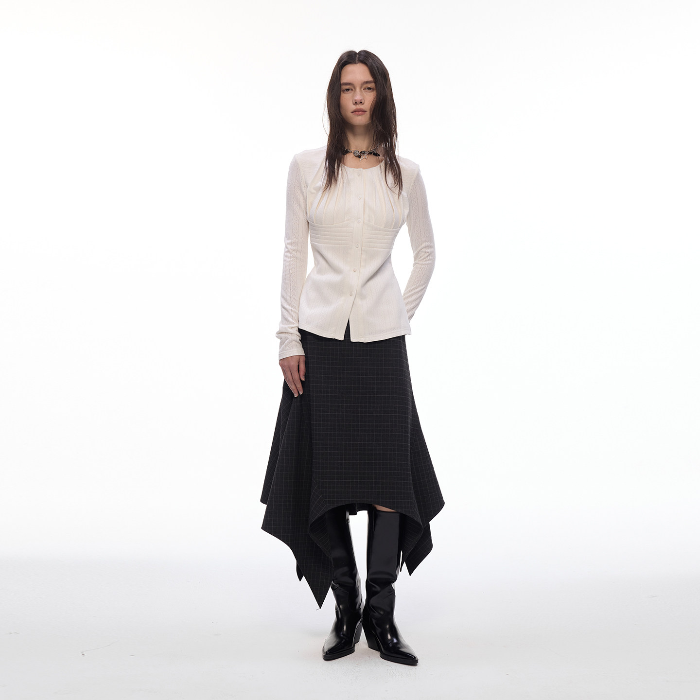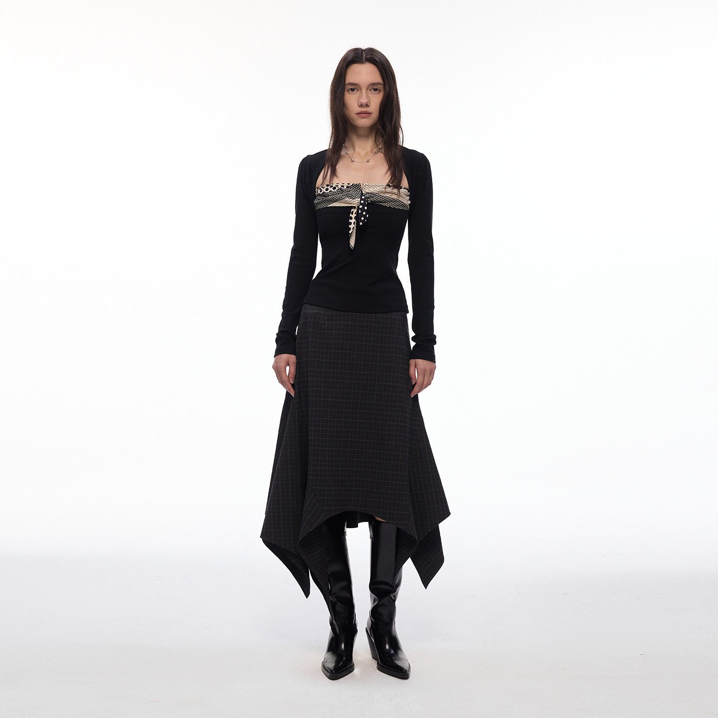 【偏锋格律】BiLLconch暗黑格纹不规则半身裙女百搭中长款a字裙
