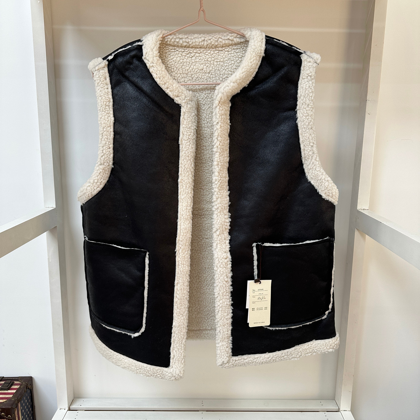 日单捡漏秋冬款羊羔毛马甲保暖两面穿时尚外套圆领百搭显白上衣女
